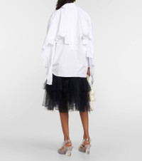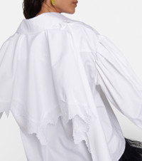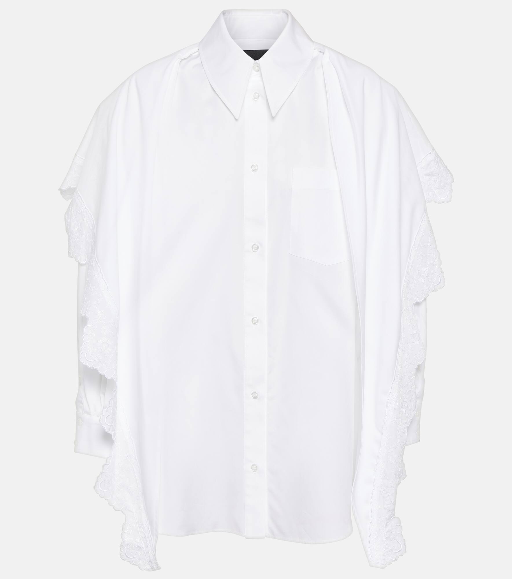 Simone Rocha showcases her artistic style through this embroidered cotton shirt, offering a subversive mix of romance and femininity. This shirt has a cape detail adorned with delicately embroidered scallops on both the front and back. Product Details - Care instructions: machine wash at 40 degrees - Made in Portugal - Material: 100% cotton - Designer color name: White/White - Item number: P00851320 Size & Fit - True to size - Dropped shoulders - Oversized - Mid-weight material - Falls below the hip - The model seen in the picture is 178cm-5'10" and wearing a size UK 8