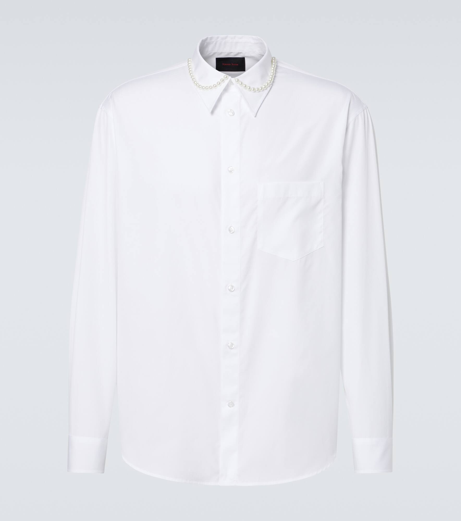 Faux pearl-embellished cotton poplin shirt