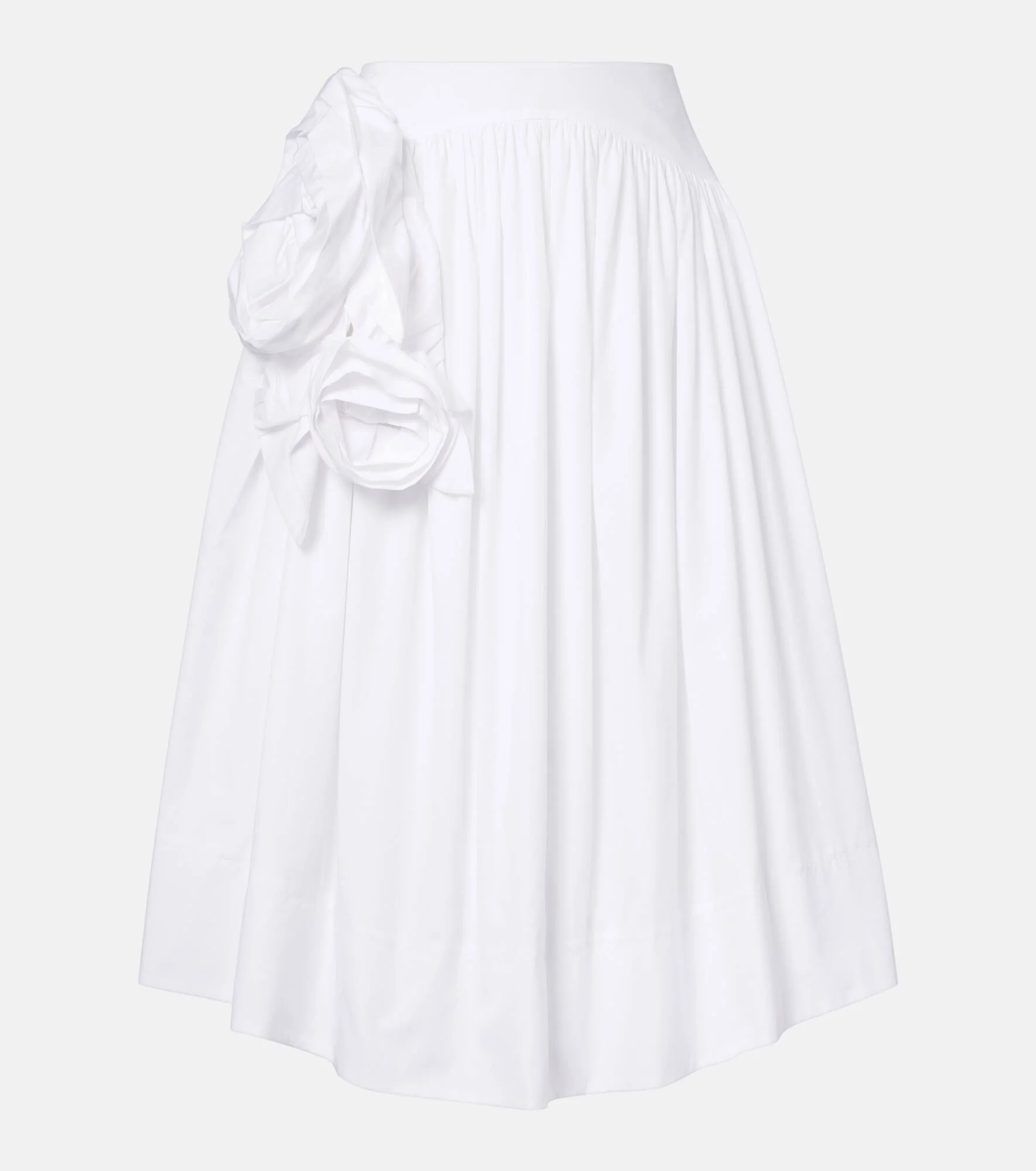 A mainstay at London Fashion Week, Simone Rocha's artful aesthetic is a subversive take on romance. Crafted from pure cotton poplin, this midi skirt features a voluminous silhouette, an elasticated waistband, and pressed floral appliques at the side. Product Details - Material: 100% cotton - Care instructions: machine wash at 40 degrees - Made in Portugal - Color: white - Designer color name: White - Closure: concealed zipped back - Pockets: side slit pockets - Item number: P01146201 Size & Fit - Fits large to size - we recommend trying one size smaller - Non-stretchy fabric - The model seen in the picture is 178cm-5'10" and wearing a size UK 6
