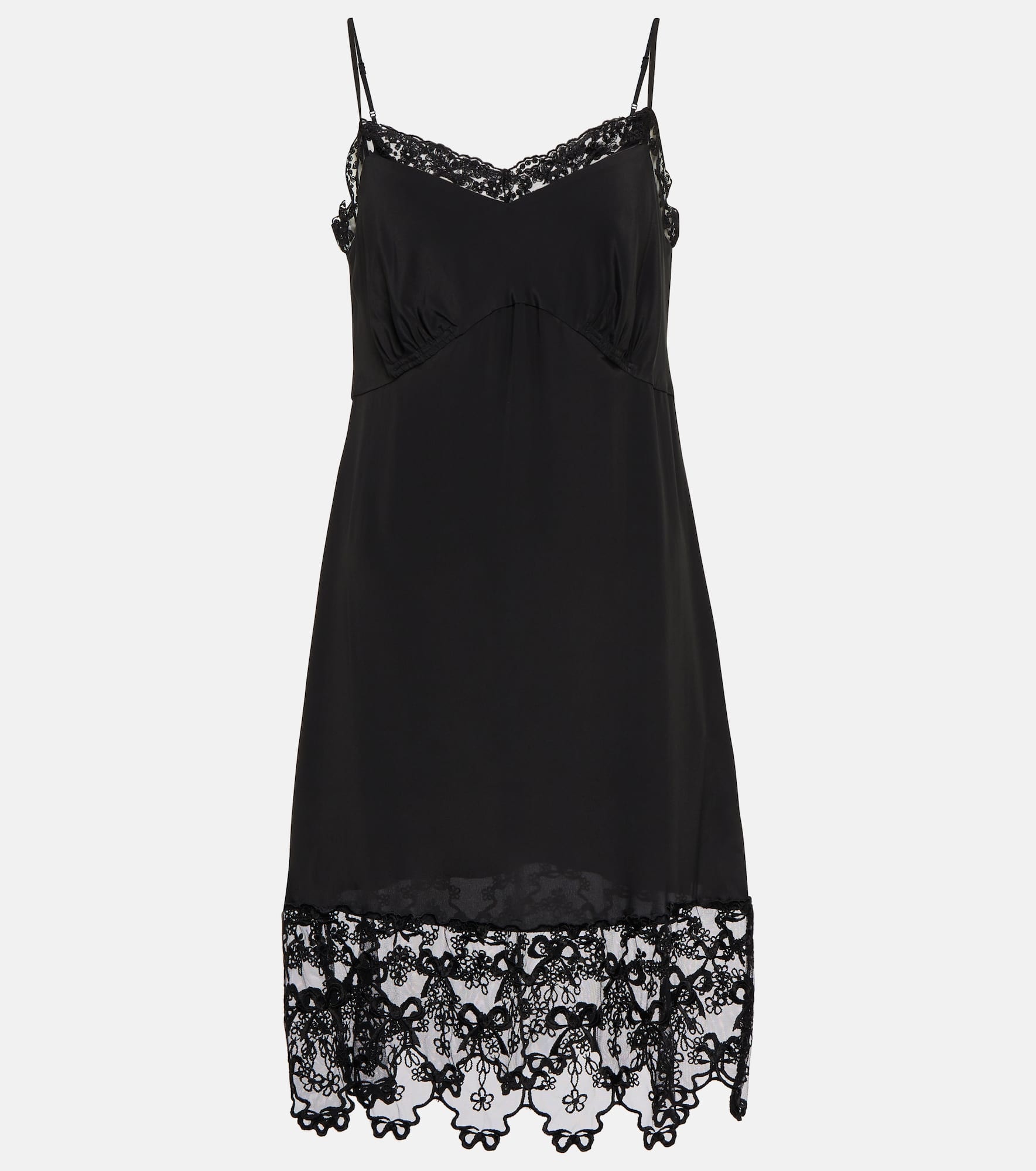 A mainstay at London Fashion Week, Simone Rocha's artful aesthetic is a subversive take on romance and femininity. This slip dress will make a beautiful addition to your wardrobe with its bow-motif lace trim and fluid silk-blend fabric. Product Details - Trim: 100% polyamide - Adjustable shoulder straps - Material: 27% silk, 73% acetate - Designer color name: Black - Care instructions: dry clean - Made in Portugal - Embroidery: 100% polyester - Item number: P00781025 Size & Fit - Fits large to size - we recommend trying one size smaller - Cinched waist - Mid-weight material - The model seen in the picture is 178cm-5'10" and wearing a size UK 6