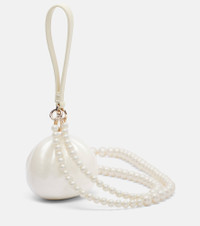 Simone Rocha’s signature glass pearl embellishments are a symbol of the brand’s romantic elegance. The signature detail embellishes the crossbody strap of the perspex Pearl Egg clutch, inspired by the shape of an egg and complete with a leather strap. Product Details - Material: acrylic - Lining: fabric - Made in China - Color: white - Designer color name: Pearl/Pearl - Trim: leather - Closure: magnetic fastening - Wrist strap, Detachable shoulder strap - Includes: dust bag, box - Item number: P01161378 Size & Fit - Max. height 9,5cm-3.5" - Max. width 9cm-3.5" - Depth 8cm-3" - Length shoulder strap 125cm-49" - Length of wrist strap 36cm-14"