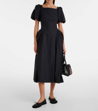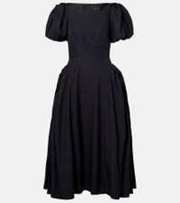 Puff-sleeve cotton poplin midi dress