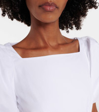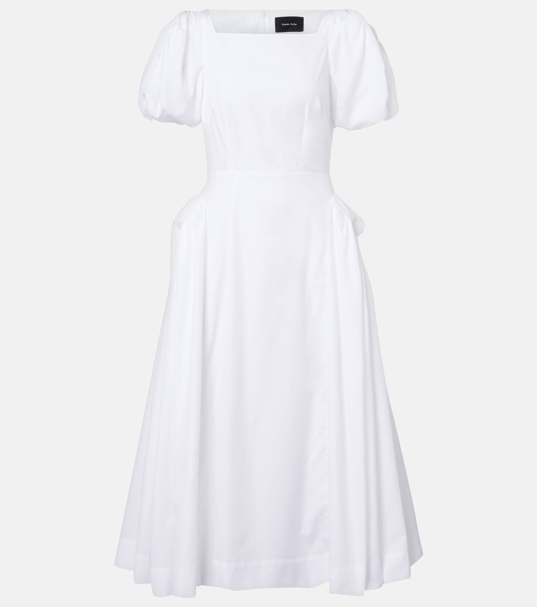 This Simone Rocha midi dress is crafted from cotton poplin and embodies the brand's romantic flair. This piece features charming puffed sleeves, a signature gathered bow shape, an exaggerated hip detail, and a concealed zip closure. Product Details - Material: 100% cotton - Care instructions: hand wash - Made in Portugal - Designer color name: White - Item color: white - Lining: 100% cotton - Details: 100% nylon - Closure: concealed zipper - Item number: P01074242 Size & Fit - True to size - Cinched waist - Non-stretchy fabric - The model seen in the picture is 178cm-5'10" and wearing a size UK 8