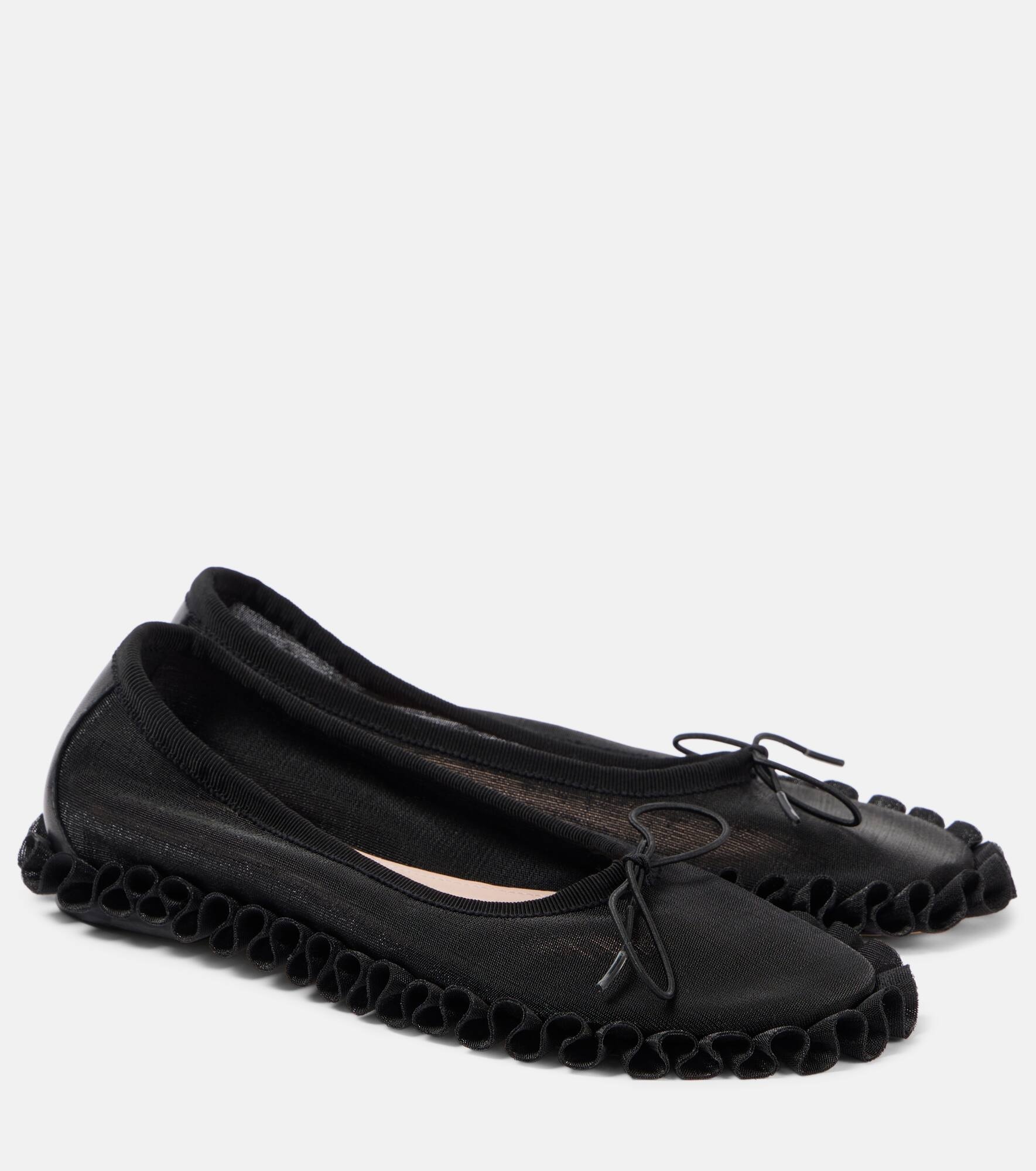 Ruffled mesh ballet flats