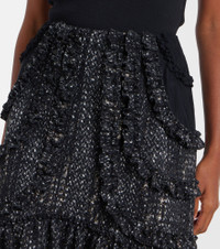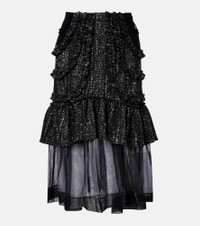 A mainstay at London Fashion Week, Simone Rocha's artful aesthetic is a subversive take on romance and elegance. Crafted from tweed with a boucle finish, this high-waisted midi skirt features frayed trims and tulle-trimmed at the bottom for a sophisticated finish. Product Details - Material: 42% polyester, 23% acrylic, 17% wool, 10% cotton, 7% polyamide, 1% viscose - Care instructions: dry clean - Made in Portugal - Designer color name: Black/Black - Item color: black - Material II: 100% polyamide - Lining: 60% acetate, 40% cupro - Closure: zipped back - Fully lined - Item number: P01074214 Size & Fit - Fits large to size - we recommend trying one size smaller - Non-stretchy fabric - High-waisted - The model seen in the picture is 178cm-5'10" and wearing a size UK 6