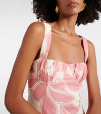 Product Details - Material: 100% linen - Care instructions: dry clean - Made in China - Designer color name: Rose Mariposa Print - Item number: P00922863 Size & Fit - True to size - Cinched waist - Underwired top - Non-stretchy fabric - slit length 60,0cm-23.5" - The model seen in the picture is 178cm-5'10" and wearing a size 1