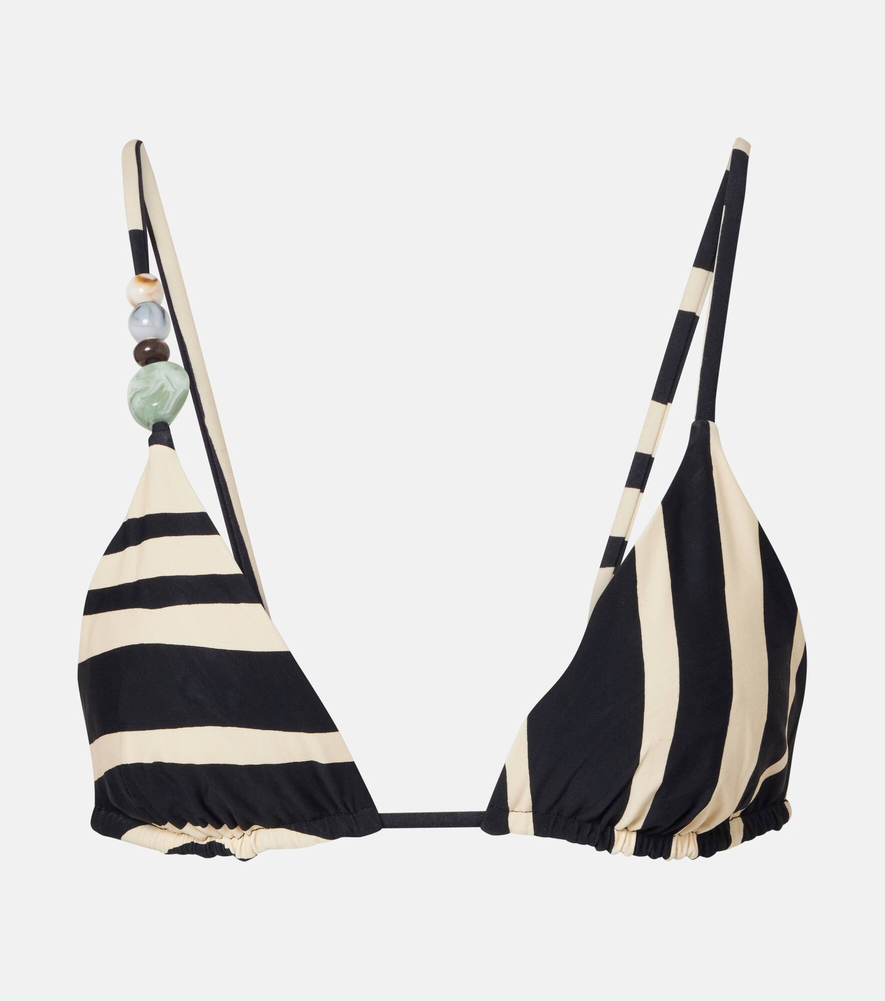 An acronym for “separates, intimates, and ready-to-wear”, SIR sets the standard for easy-to-wear wardrobe staples. This bikini top is striped and adorned with embellishments on one of the ties. Product Details - Material: 76% nylon, 24% elastane - Care instructions: hand wash - Handmade in China - Designer color name: Ligne - Item color: black, beige - Lining: 74% nylon, 26% elastane - Details: 100% resin - Self-tie back - Item number: P01074291 Size & Fit - True to size - Unpadded Top - The model seen in the picture is 178cm-5'10", cup size B, and wearing a size 1