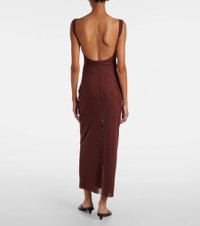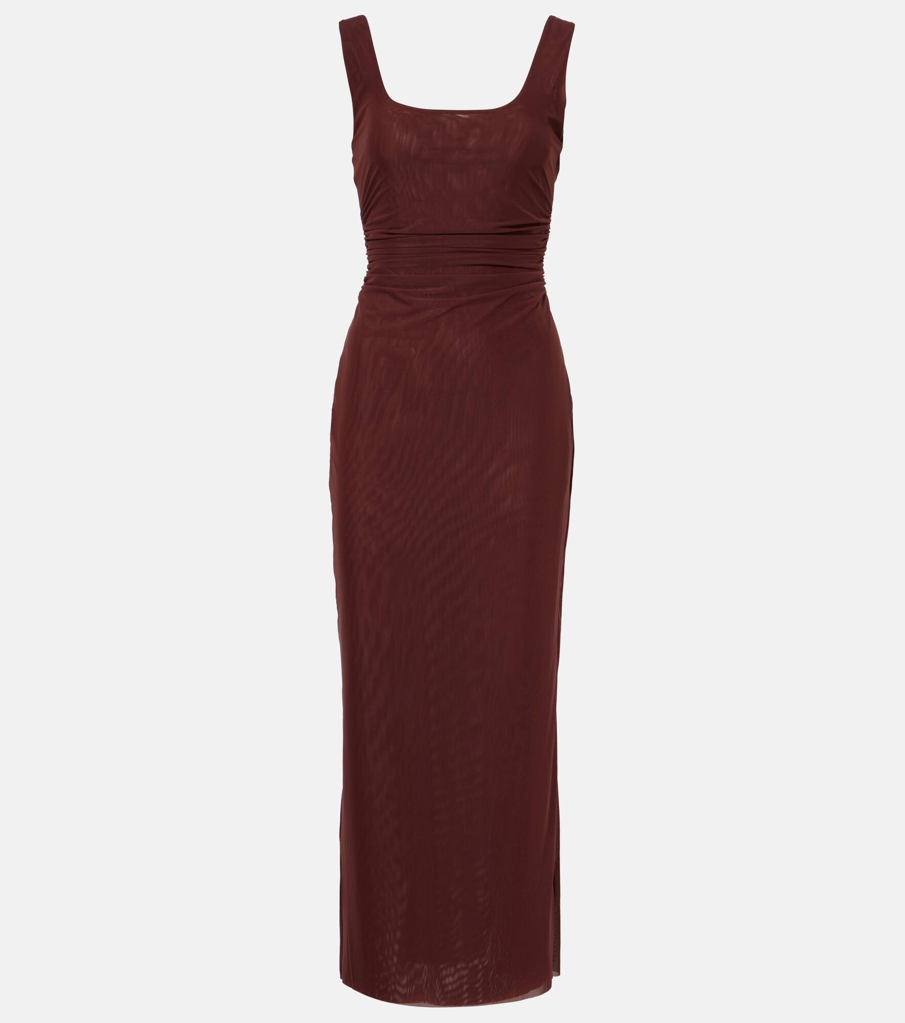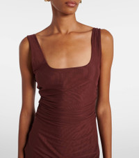 Jacques open-back gathered stretch-mesh midi dress Brown
