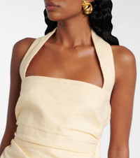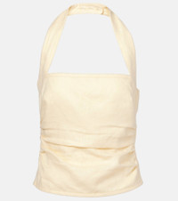 An acronym for “separates, intimates, and ready-to-wear”, SIR sets the standard for easy-to-wear wardrobe staples. The Jerry linen top features slight ruching that resembles draping, an elegant halter neckline, and a concealed zip-up fastening. Product Details - Material: 100% linen - Care instructions: dry clean - Made in China - Designer color name: Butter - Item color: ivory - Lining: 100% cotton - Closure: zipped side, zip and hook fastening - Item number: P01041715 Size & Fit - Fits large to size - we recommend trying one size smaller - Cinched waist - Non-stretchy fabric - Slightly cropped - Height of model is 174cm-68.5" and wears a size 0