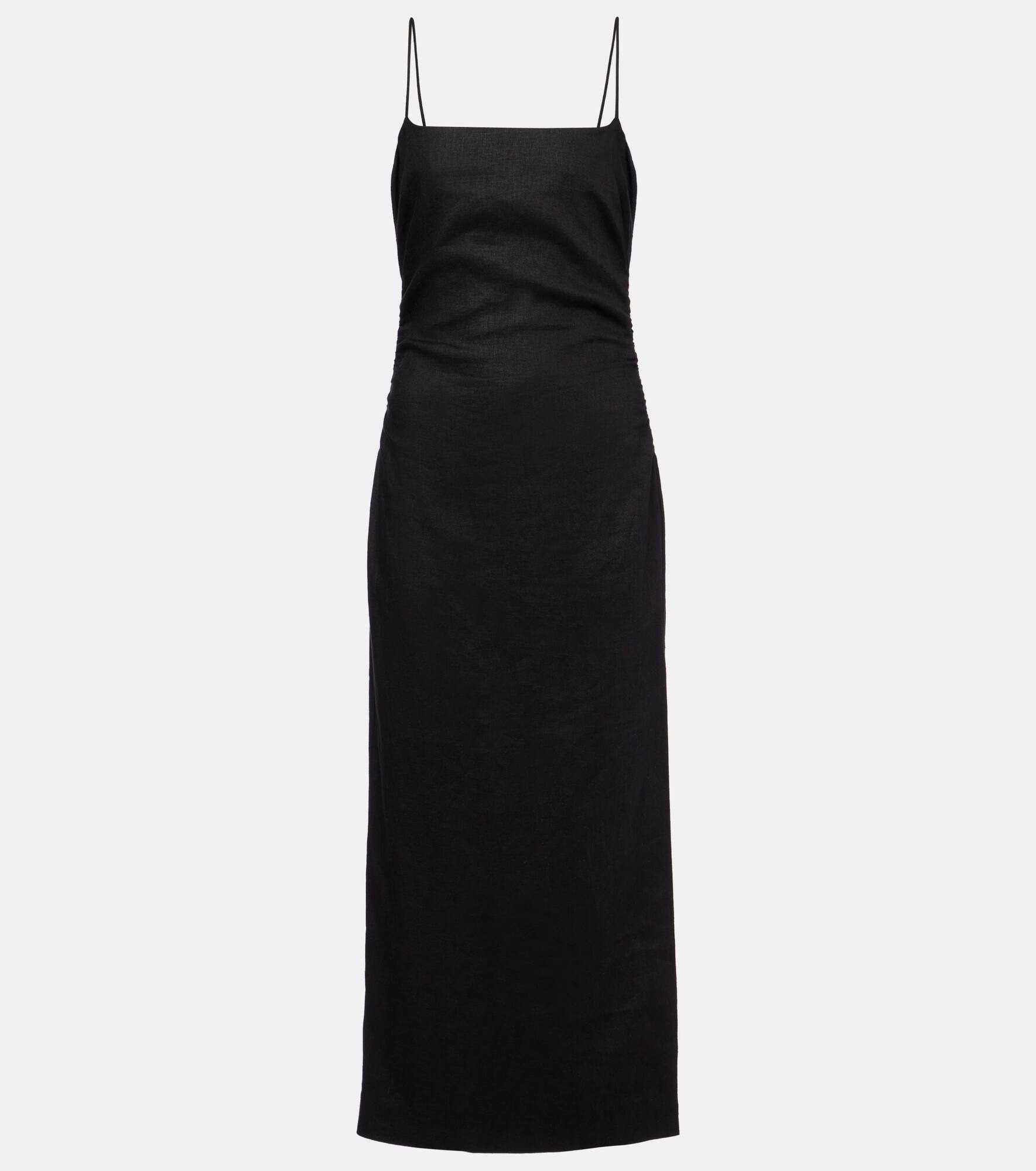 An acronym for “separates, intimates, and ready-to-wear”, SIR sets the standard for easy-to-wear wardrobe staples. Made from lightweight and breathable linen, this midi dress is an emblem of timeless elegance. The effortless style is completed with spaghetti straps and side slits. Product Details - Material: 100% linen - Care instructions: dry clean - Made in China - Designer color name: Black - Item color: black - Lining: 100% cotton - Closure: invisible zipper - Item number: P01041725 Size & Fit - True to size - Cinched waist - Non-stretchy fabric - The model seen in the picture is 178cm-5'10" and wearing a size 1