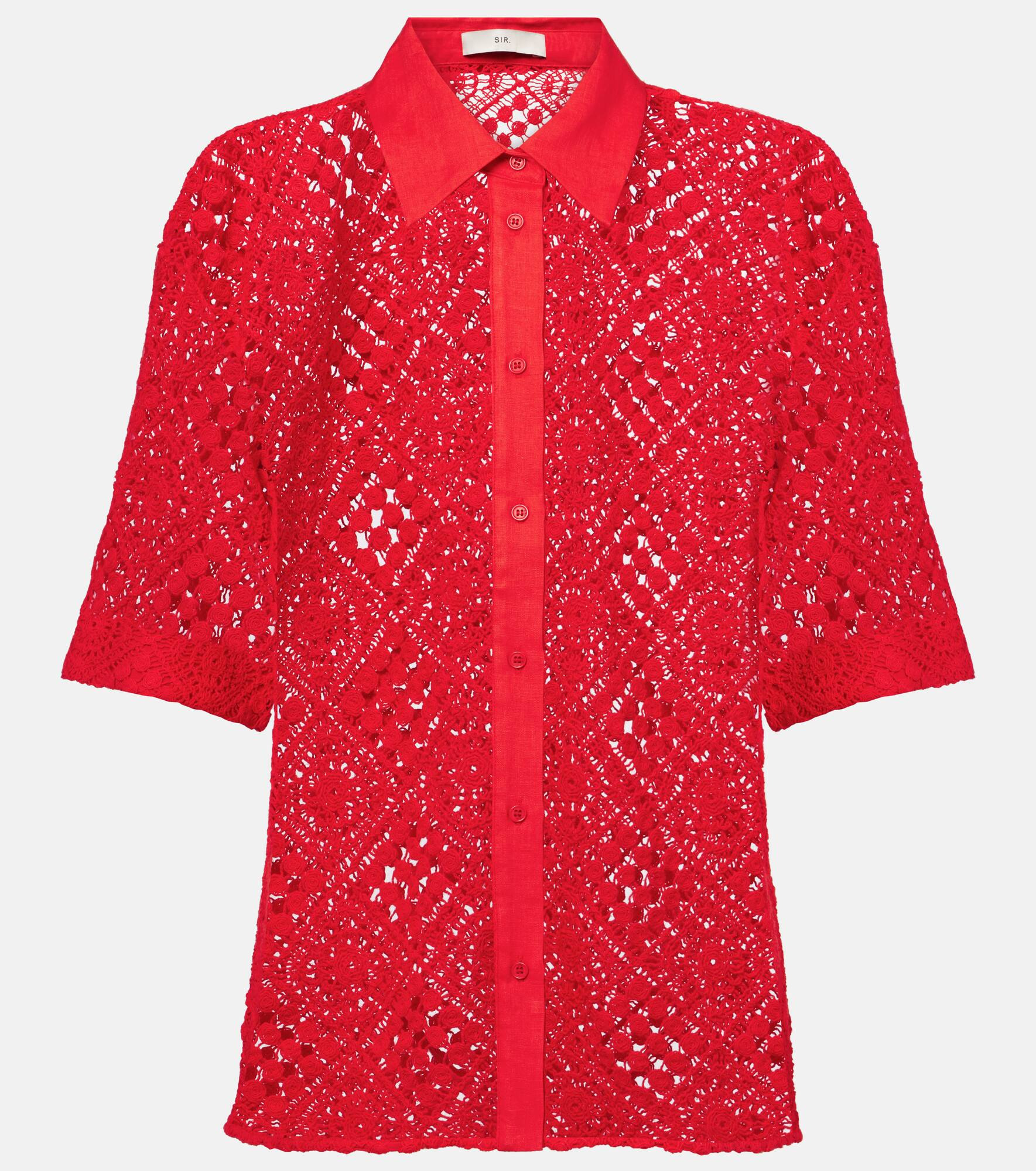 Greet the sunshine with the Rayure breezy cotton-blend shirt from SIR. The hand-crocheted design has crisp poplin trims at the pointed collar and button placket. Product Details - Material: 95% cotton, 5% nylon - Care instructions: dry clean - Made in China - Designer color name: Red - Item color: red - Material II: 100% linen - Closure: buttoned front - Item number: P01041708 Size & Fit - True to size - Dropped shoulders - Sheer - Designed for a loose fit - Non-stretchy fabric - Falls to the hip - The model seen in the picture is 178cm-5'10" and wearing a size 1