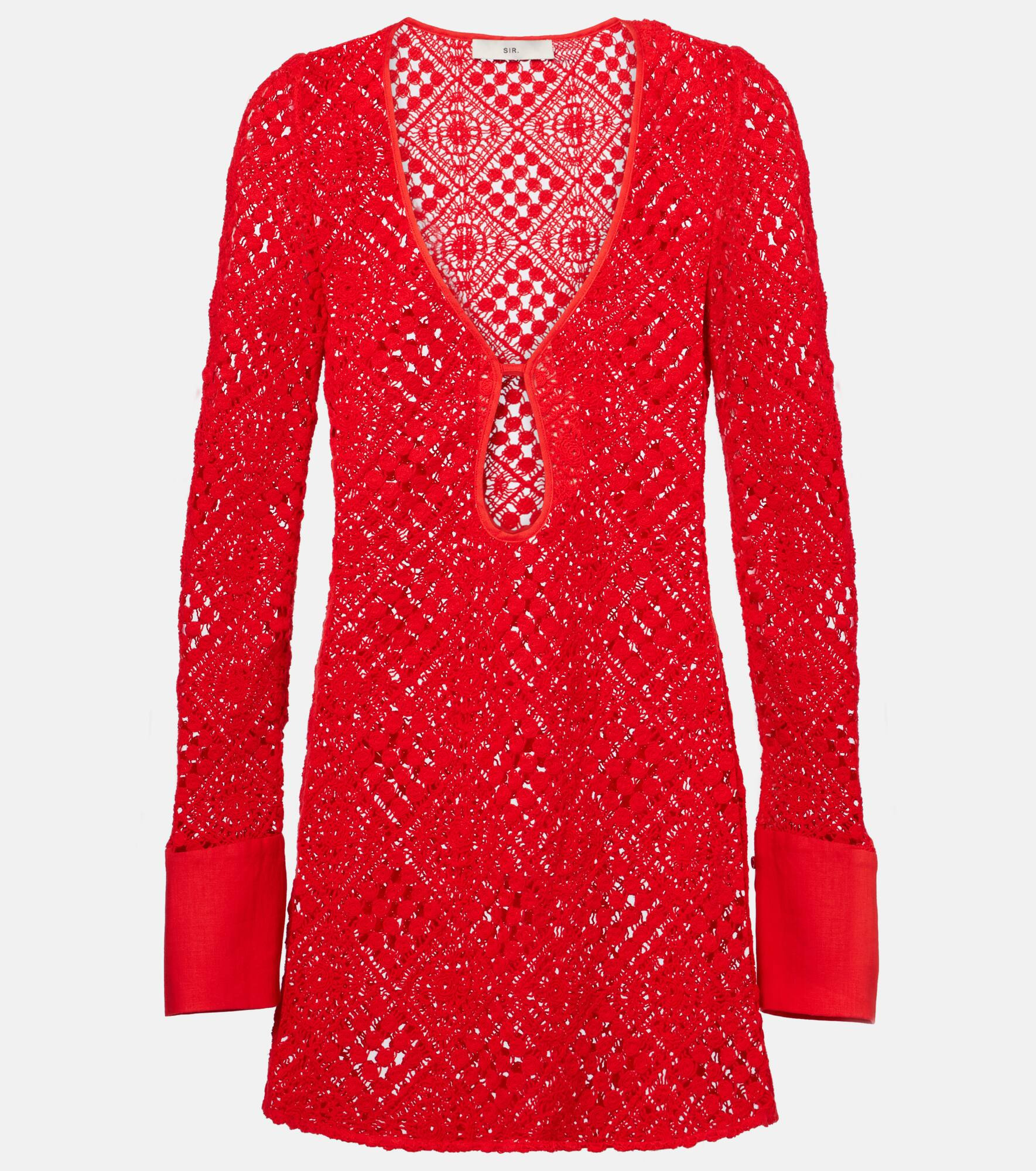 Greet the sunshine with the Rayure breezy cotton minidress from SIR. The hand-crocheted design has a plunging neckline with a keyhole cutout and poplin cuffs at the ends of the sleeves for extra detail. Product Details - Material: 95% cotton, 5% nylon - Care instructions: dry clean - Made in China - Designer color name: Red - Item color: red - Material II: 100% linen - Item number: P01041707 Size & Fit - Fits large to size - we recommend trying one size smaller - Cinched waist - Non-stretchy fabric - The model seen in the picture is 178cm-5'10" and wearing a size 0
