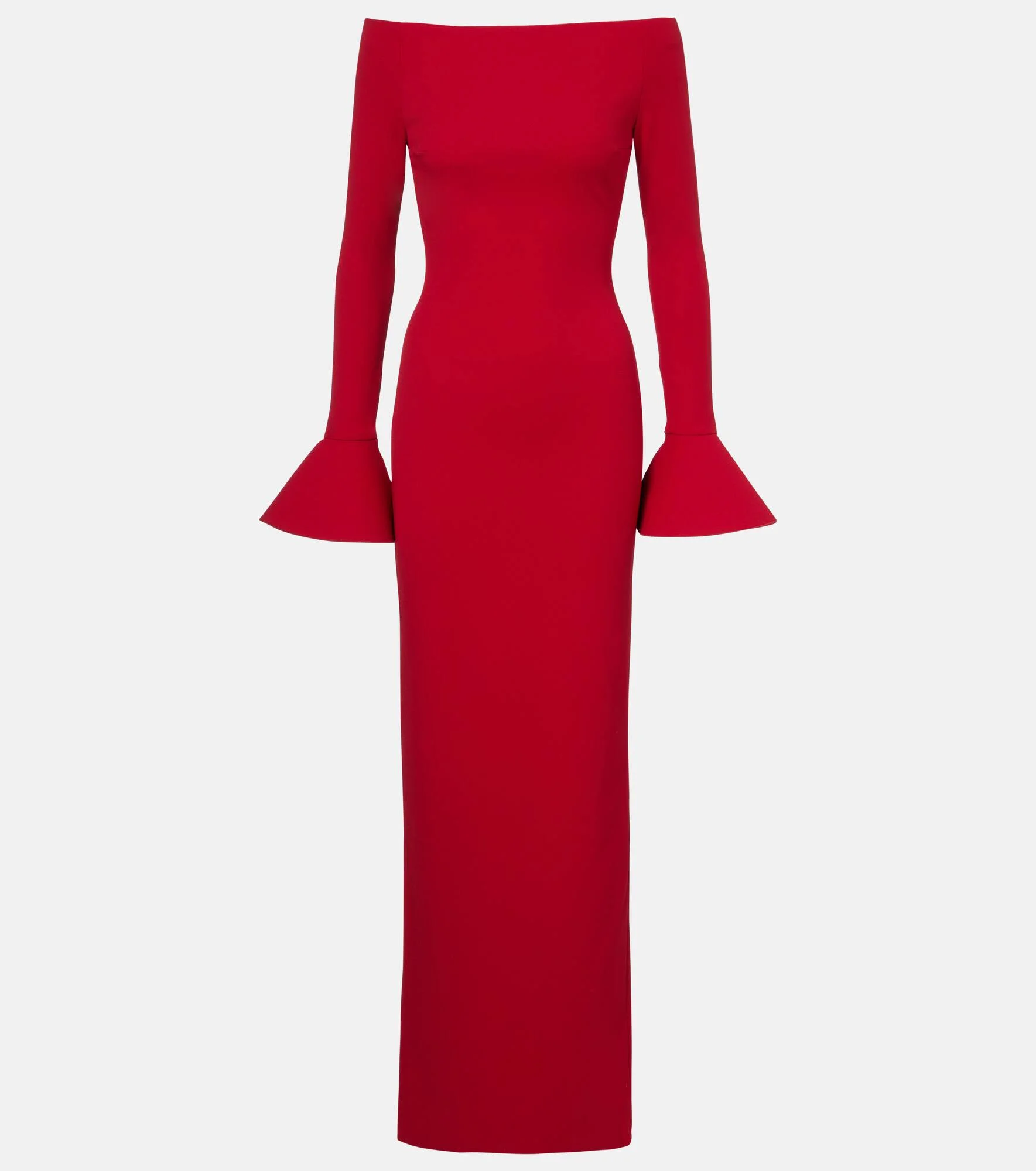 Make a statement at special events in the Anica gown from Solace London, adorned with voluminous, ruffled cuffs. The vibrant design comes in a flattering, fitted silhouette and features a sophisticated off-shoulder neckline. Product Details - Material: 95% polyester, 5% elastane - Care instructions: dry clean - Made in China - Designer color name: Red #113 - Item color: red - Lining: 95% polyester, 5% elastane - Trim: 98% polyester, 2% elastane - Closure: concealed zipped back - Cuff: zipped - Long vent - Item number: P01114294 Size & Fit - Fits small to size - we recommend trying one size larger - Off-the-shoulder - Fitted - Slightly stretchy fabric - The model seen in the picture is 178cm-5'10" and wearing a size UK 8