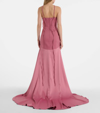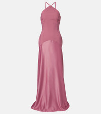 Turn to Solace London for unforgettable looks that will make a statement at sophisticated soirees. The Florie gown boasts an elegant halterneck, and the satin skirt showcases delicate flounces and a back train. Product Details - Material: 100% polyester - Care instructions: dry clean - Made in China - Designer color name: Dark Rose - Item color: pink - Lining: 95% polyester, 5% elastane - Boning - Closure: concealed zipped back - Hem: uneven - Item number: P01114291 Size & Fit - True to size - For larger bust sizes we recommend taking one size up - Close fit at the waist - Cinched waist - Non-stretchy fabric - The model seen in the picture is 178cm-5'10" and wearing a size UK 6