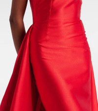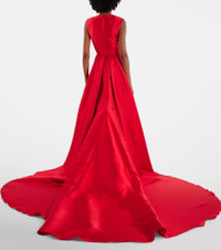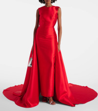 Established in 2013, Solace London skillfully balances modern futurism with timeless minimalism. The Larsen gown comes with a sleek satin finish and is shaped with a bodice that elegantly flows into a flared skirt with a train. Product Details - Material: 100% polyester - Care instructions: dry clean - Made in China - Designer color name: Red - Item color: red - Lining: 95% polyester, 5% elastane - Closure: zipped back - Item number: P01066835 Size & Fit - True to size - Cinched waist - Non-stretchy fabric - slit length 63cm-25" - The model seen in the picture is 178cm-5'10" and wearing a size UK 6