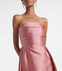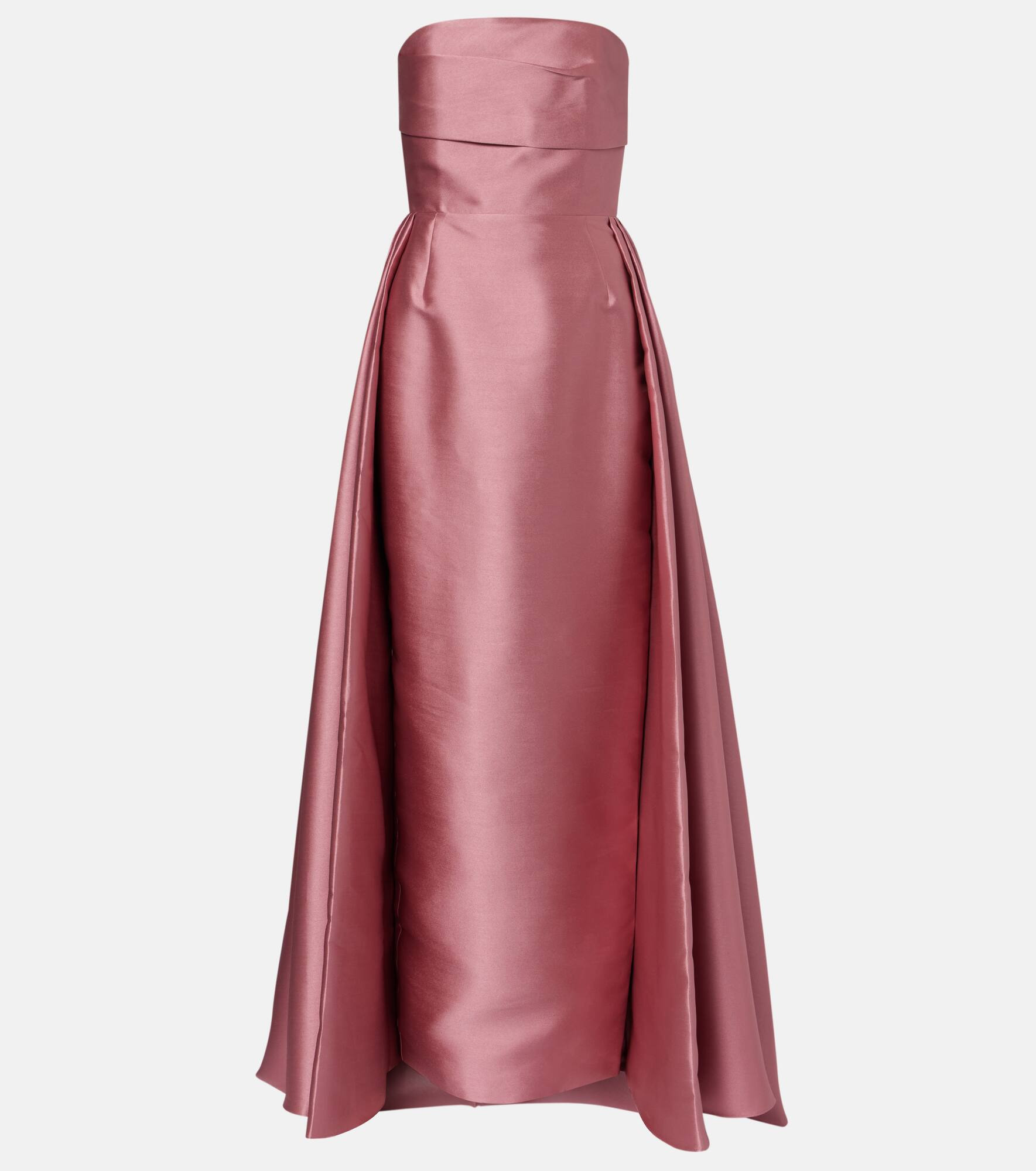 Solace London skillfully balances modern futurism with timeless minimalism. This gown is crafted from satin, has a strapless neckline, and is complete with volume added to the waist for extra glamour. Product Details - Material: 100% polyester - Care instructions: dry clean - Made in China - Designer color name: Peony Pink - Item color: pink - Lining: 95% polyester, 5% elastane - Fully lined - Closure: zipped back - Boning - Item number: P01096609 Size & Fit - True to size - Strapless - Internal boned corset for support - Cinched waist - Non-stretchy fabric - The model seen in the picture is 178cm-5'10" and wearing a size UK 6