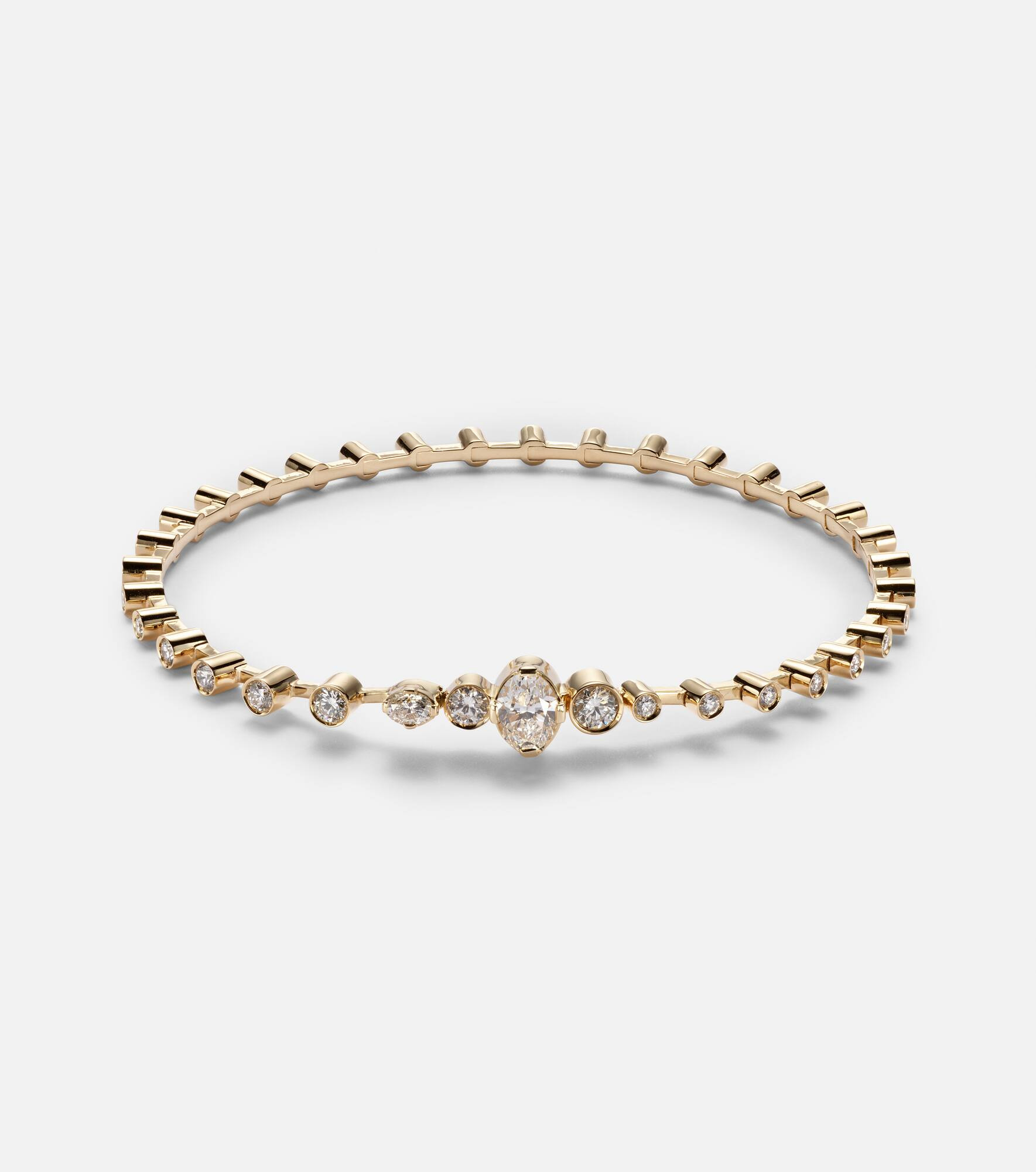 Sophie Bille Brahe's Starry Sky collection transforms celestial inspirations into modern treasures you'll love season after season. Meticulously crafted from dazzling 18kt yellow gold, the Bracelet De Sky style is defined by round-cut and oval-cut diamonds that encircle the wrist. Dainty yet impactful, this piece can be worn alone as a statement or layered with other designs. Product Details - Material: 18kt yellow gold - Made in Italy - Item color: gold - Stone I: diamonds, 1.52ctw, round-cut, oval-cut, bezel setting, VVS clarity grade, F-G color grade - This piece features natural diamonds only - Item number: P01048075 Size & Fit - Length when open 17,5cm-7" - Min. width 3mm-0.1" - Max. width 6mm-0.25"