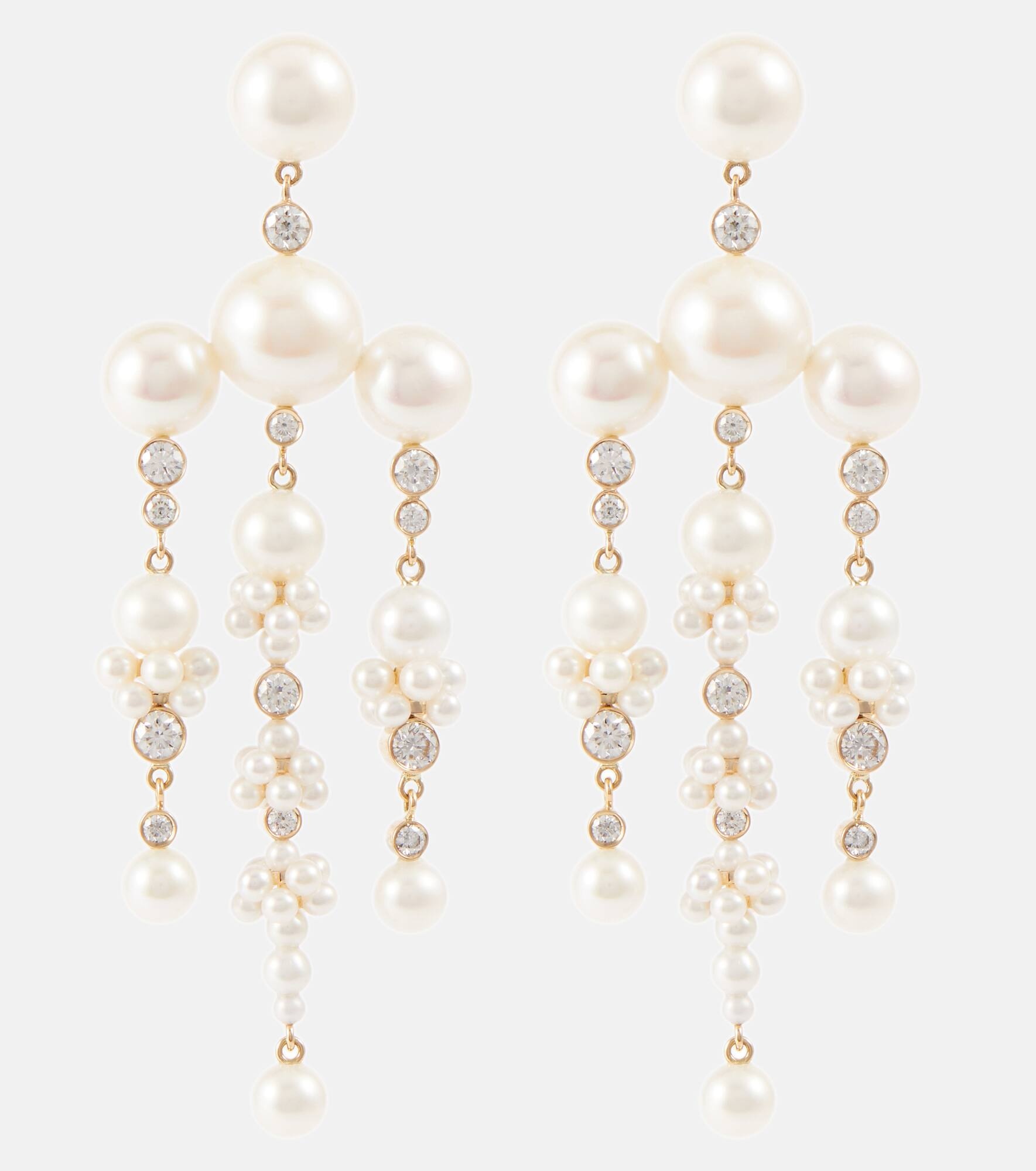 Sophie Bille Brahe's Jardin de Rêve capsule is the designer's first collection to combine pearls and diamonds. The Jardin de Rêve earrings are crafted from 14kt yellow gold in a chandelier design with freshwater pearls and bezel-set round diamonds. Product Details - Material: 14kt yellow gold - Made in Thailand - Stone I: white diamonds - Pearl: freshwater - Closure: butterfly-back fastening - Designer color name: Yg Pearl - Item number: P00749835 Size & Fit - Length 64mm-2.5" - Max. width 22mm-0.85"