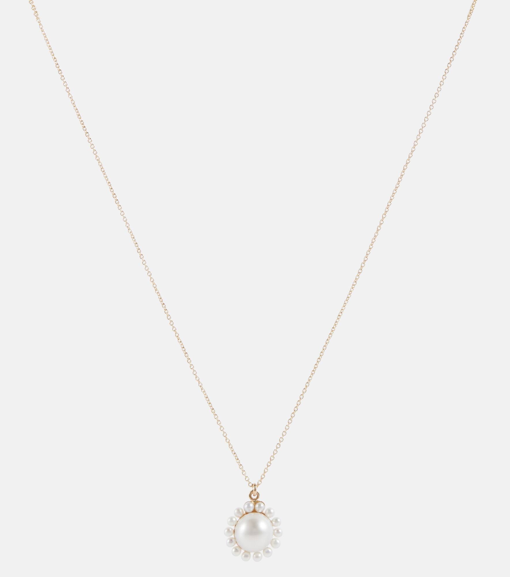 Count on Sophie Bille Brahe to deliver elegant pieces primed for your forever collection, like the Jeanne Simple necklace. Made from 14kt yellow gold, the delicate design features a sun-inspired pendant embellished with freshwater pearls for a classic touch. Product Details - Material: 14kt yellow gold - Made in Thailand - Pearl: freshwater cultivated - Closure: hook - Designer color name: Yg - Item number: P00812878 Size & Fit - Length when open 43cm-17" - Width 1mm-0.05" - Pendant length 15mm-0.6" - Pendant width 12mm-0.45"