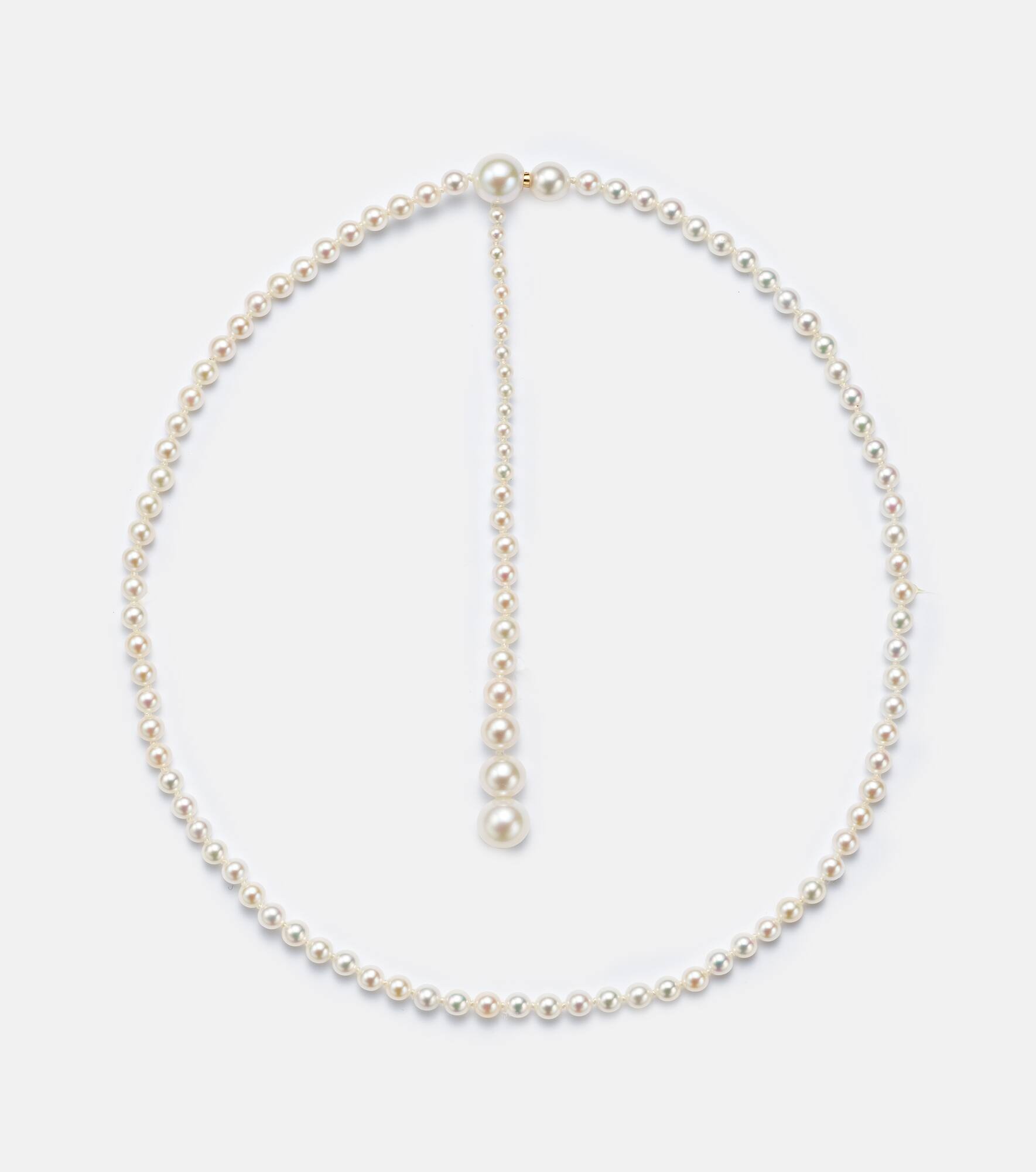 Danish designer Sophie Bille Brahe believes that jewelry should be personal and tell a story. Featuring delicate round freshwater pearls that gracefully encircle the neck, this 14kt yellow gold necklace is complete with a string of graduating pearls and a lock with a hidden pin closure. Sophisticated and charming, this exquisite creation is primed for your everyday stack, special occasions, and beyond. Product Details - Material: 14kt yellow gold - Made in Thailand - Item color: white, gold - Pearl: freshwater, round shape, grown in China - Closure: pin fastening - Item number: P01048079 Size & Fit - Length when open 38,5cm-15" - Min. width 3mm-0.1" - Max. width 8mm-0.3" - Pendant length 100mm-3.95" - Pendant width 8mm-0.3"