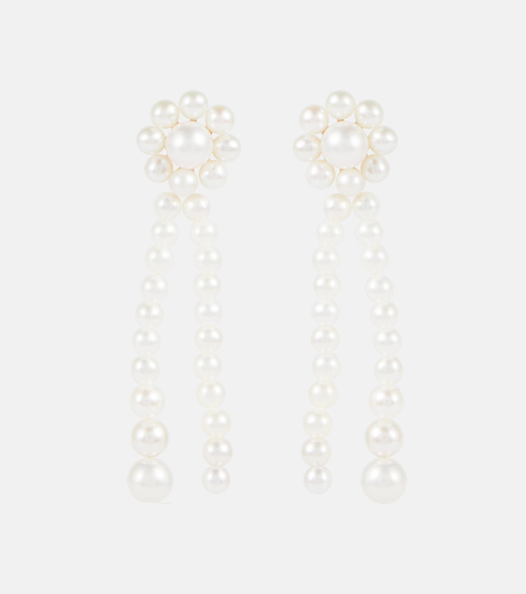 Grande Promenade de Fleur 14-karat gold pearl earrings White