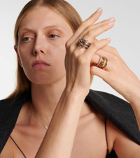 The Janssen SG Gris ring from Spinelli Kilcollin is handcrafted in the USA from a gleaming mix of 0.925 sterling silver, 18kt gold and gray diamonds totaling 1.2tcw. Yellow and rose gold rings connect each of the four pieces, creating a dramatic design to add to your jewelry repertoire. Product Details - Material: 18kt yellow gold, 18kt rose gold, 925 sterling silver - Made in the USA - Stone I: diamonds, round-cut, pavé setting - Designer color name: White/Yellow Gold - Item number: P00588125 Size & Fit - Max. width 16mm-0.65"