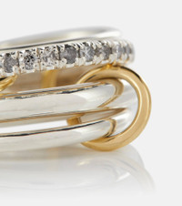 Janssen SG Gris sterling silver ring with diamonds and yellow and rose gold connectors