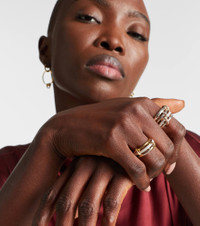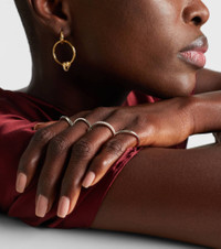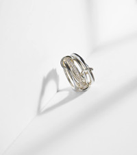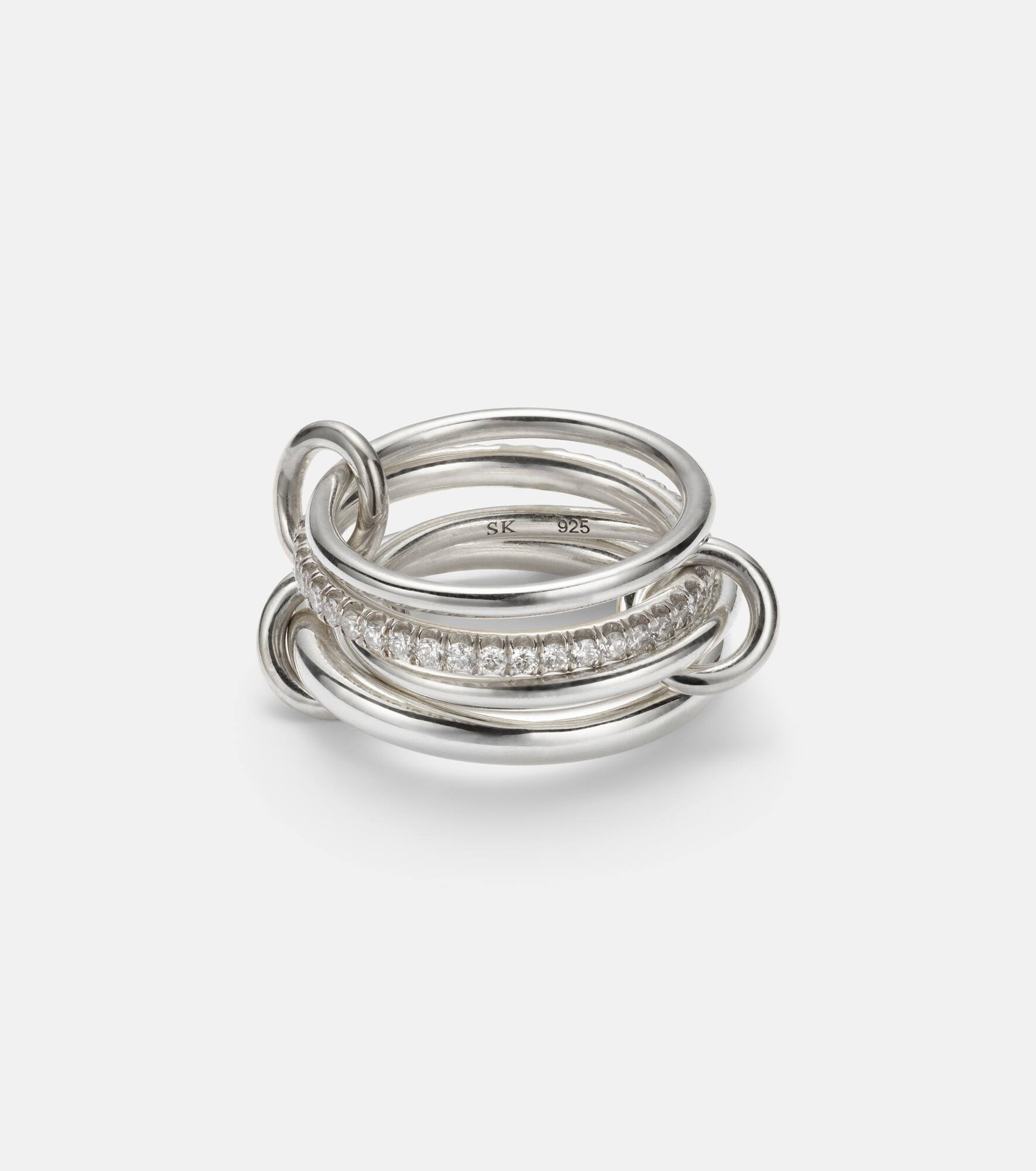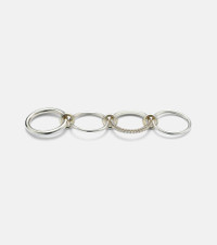 The Nimbus design by Spinelli Kilcollin features four sterling silver bands connected by circular links. One band is set with pave diamonds, and the piece can be worn stacked or spread across multiple fingers for a versatile look. Product Details - Material: 925 sterling silver - Handmade in the USA - Item color: silver - Stone I: 40 diamonds, VS1 clarity grade, G color grade, pave setting, 0.7ctw - Item number: P01071836 Size & Fit - Max. width 16mm-0.65"
