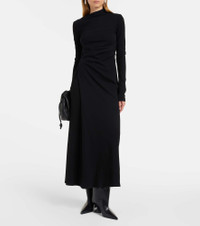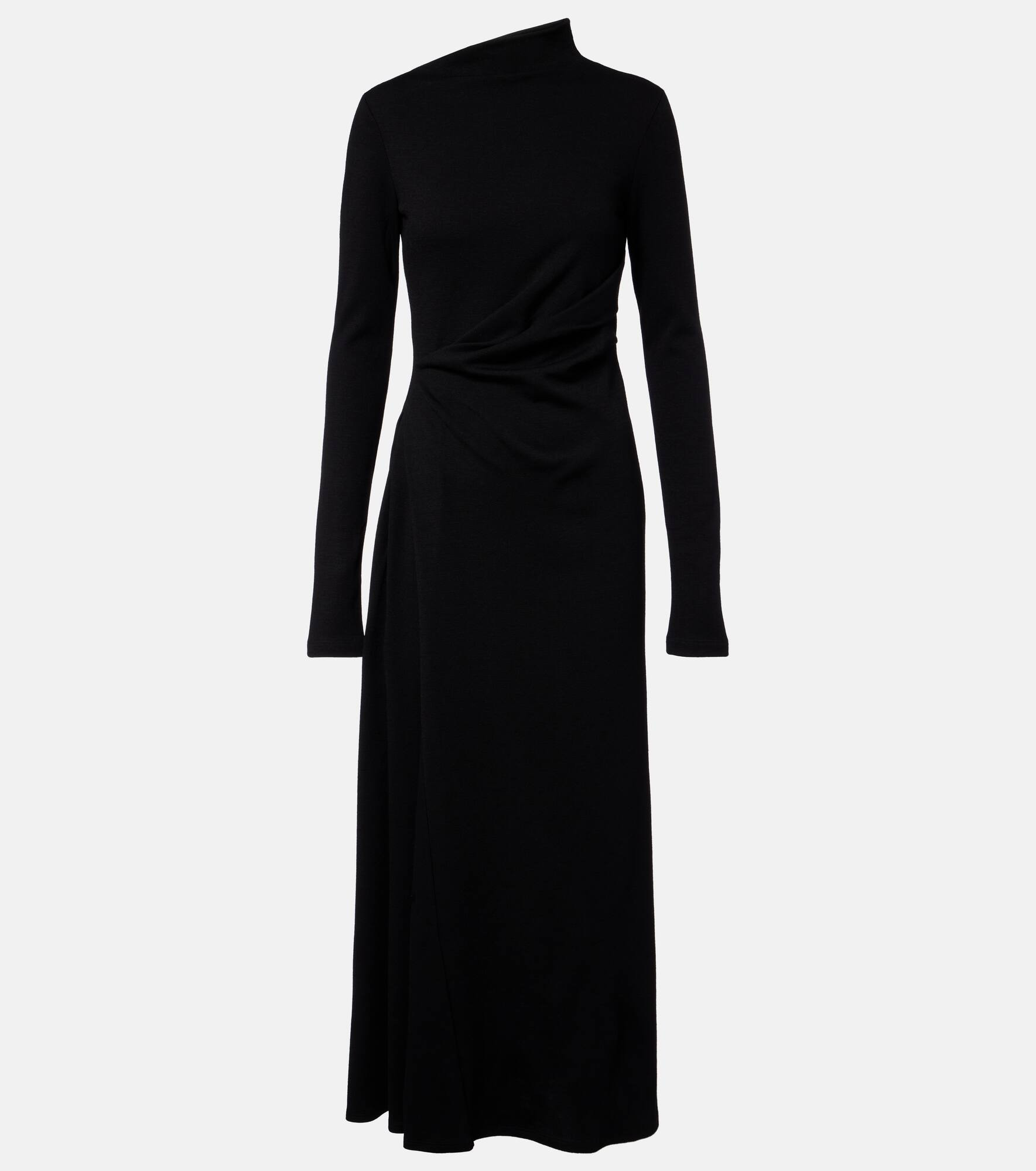 Founded on the principles of tailoring and experimentation, Sportmax combines a contemporary urban spirit with sportswear-inspired silhouettes. The Edile midi dress is an asymmetric design crafted from a wool and cotton-blend fabric, with slight draping throughout. Product Details - Material: 48% wool, 45% cotton, 7% polyamide - Care instructions: dry clean - Made in Italy - Designer color name: Nero - Item color: black - Collar: mockneck - Item number: P01094339 Size & Fit - True to size - Cinched waist - Stretchy fabric - The model seen in the picture is 178cm-5'10" and wearing a size XS