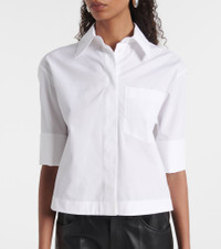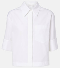 Founded on the principles of tailoring and experimentation, Sportmax combines a contemporary urban spirit with sportswear-inspired silhouettes. Crafted from cotton, the Eliot short sleeve shirt features a slightly cropped length with buttoned front closure and an angled chest pocket. Product Details - Material: 100% cotton - Care instructions: machine wash at 30 degrees - Made in Romania - Designer color name: BIanco Ottico - Item color: white - Collar: classic (Straight point) - Closure: buttoned front - Pockets: angled chest pocket - Item number: P01078977 Size & Fit - True to size - Designed for a loose fit - Non-stretchy fabric - Slightly cropped - The model seen in the picture is 178cm-5'10" and wearing a size DE 34