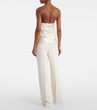 The lightweight Fatuo camisole from Sportmax is made from lustrous bonded satin featuring irregular pleats along the bias cut. The design also features a chain-linked halterneck straps that cascade down the back. Product Details - Material: 100% polyester - Care instructions: dry clean - Made in Portugal - Designer color name: Burro - Item color: white - Item number: P01078981 Size & Fit - True to size - Low back - Designed for a loose fit - Non-stretchy fabric - Falls to the hip - The model seen in the picture is 178cm-5'10" and wearing a size DE 38