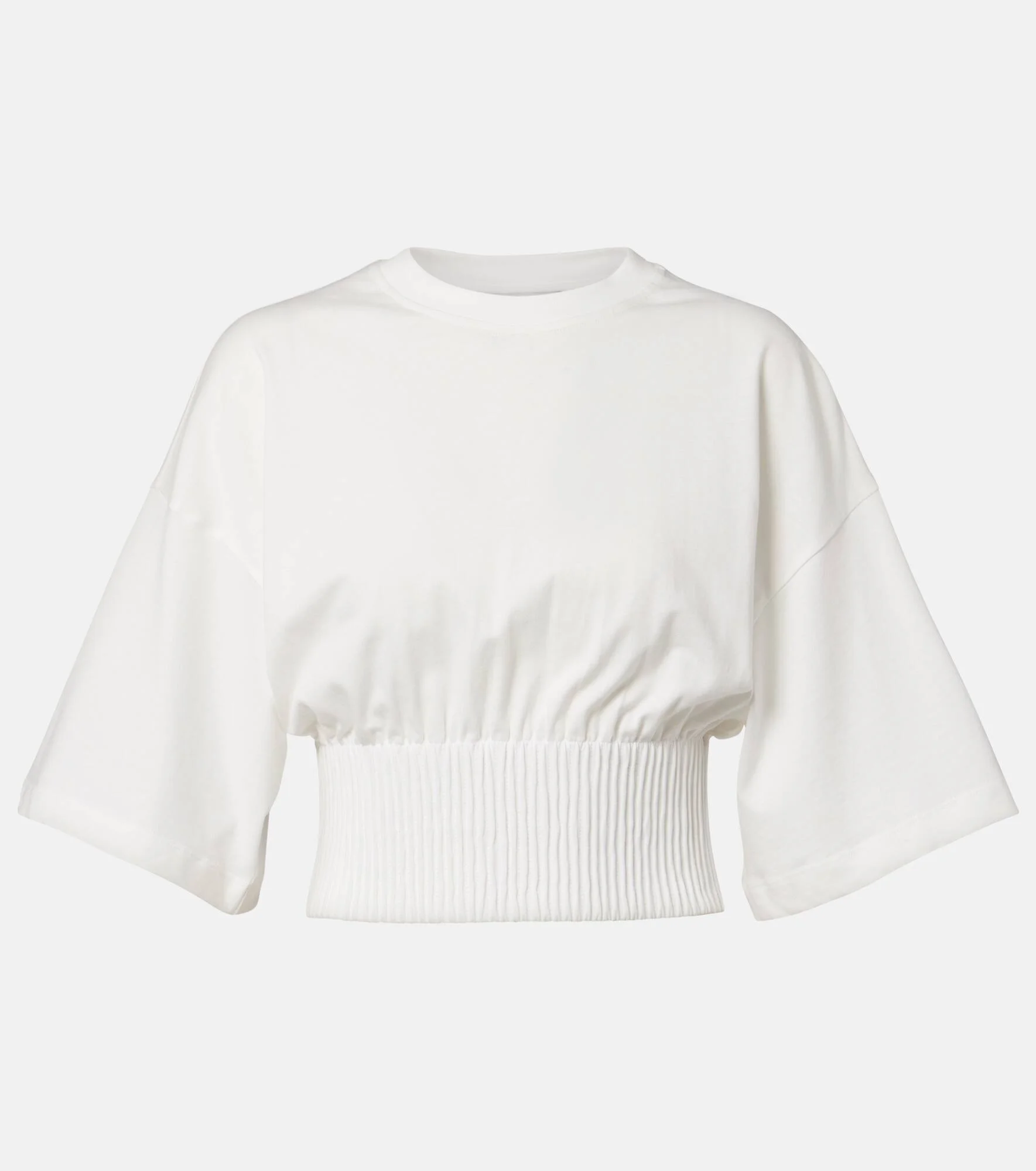 Founded on the principles of tailoring and experimentation, Sportmax combines a contemporary urban spirit with sportswear-inspired silhouettes. The Fosco top is a short-sleeved style crafted from white cotton jersey. Product Details - Material: 100% cotton - Care instructions: hand wash - Made in Tunisia - Color: white - Designer color name: Latte Gesso - Item number: P01124200 Size & Fit - True to size - Dropped shoulders - Cinched waist - Elasticated hem - Slightly stretchy fabric - Cropped - The model seen in the picture is 178cm-5'10" and wearing a size XS