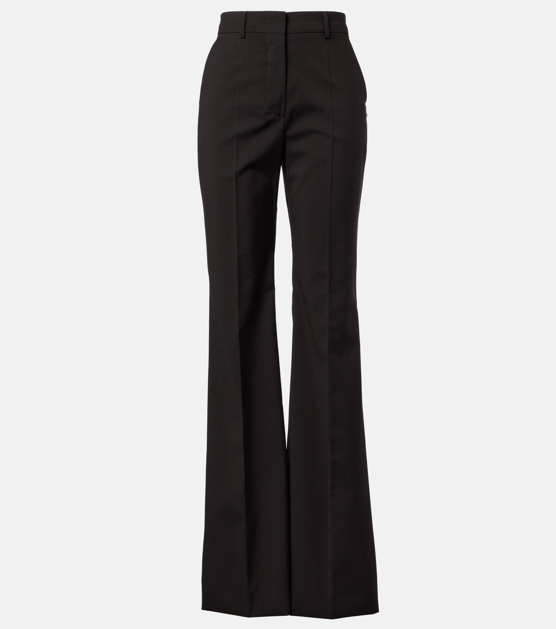 Founded on the principles of tailoring and experimentation, Sportmax combines a contemporary urban spirit with sportswear-inspired silhouettes. Made from virgin wool, the Hangar flared pants have slant and welt pockets. Product Details - Material: 100% virgin wool - Care instructions: dry clean - Made in Poland - Designer color name: Cioccolato - Item color: brown - Closure: zip, hook, and button fastening - Pockets: slant pockets, welt pockets - Belt loops - Single pleat - Item number: P01078979 Size & Fit - True to size - Sizing adapted to taller women - Non-stretchy fabric - Slim-leg with a flared hem - High-waisted - The model seen in the picture is 178cm-5'10" and wearing a size DE 34