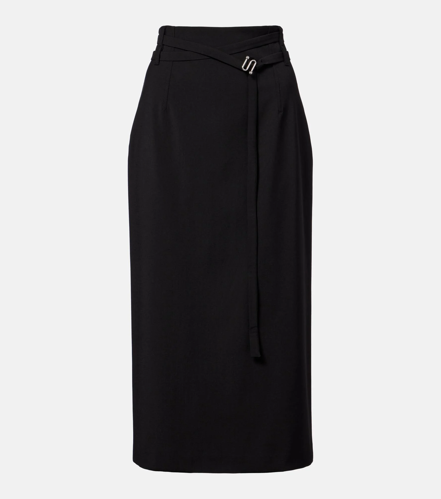Refresh your basics rotation with this design from Sportmax. This midi skirt is crafted from virgin wool and boasts a high-rise, slim-fit silhouette. Product Details - Material: 100% virgin wool - Care instructions: dry clean - Made in Italy - Color: black - Designer color name: Nero - Item color: black - Closure: concealed zipped back - Double belt loops - Detachable belt - Item number: P01124177 Size & Fit - True to size - Non-stretchy fabric - High-waisted - slit length 35,0cm-14" - The model seen in the picture is 178cm-5'10" and wearing a size DE 34