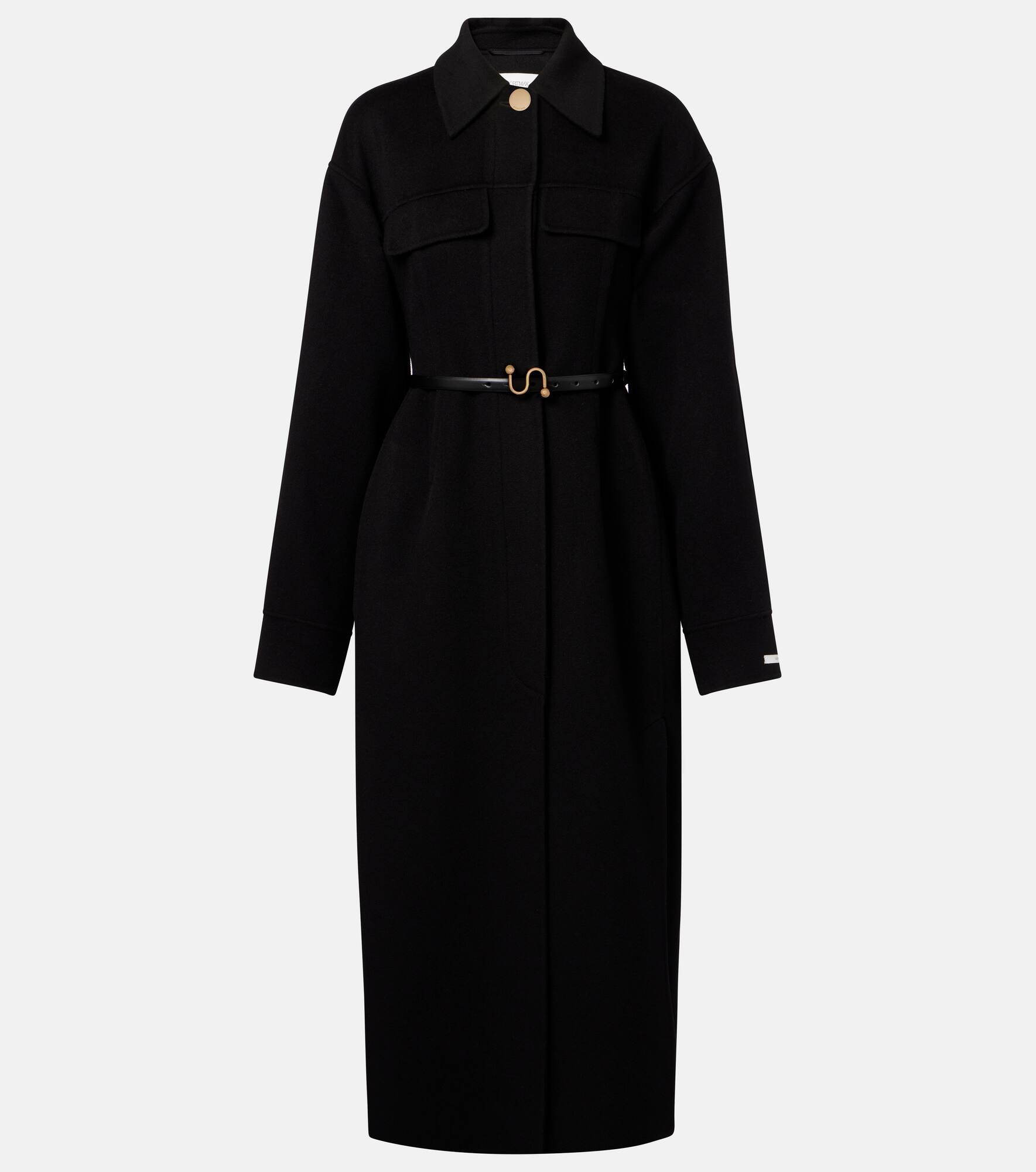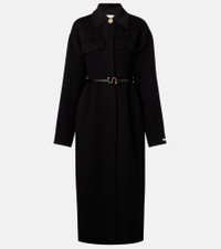 The Olio coat from Sportmax is crafted from virgin wool, blending minimalism with statement detail. This piece features a pointed collar, a detachable leather belt, flap chest pockets, and gold-toned accents for a refined, chic touch. Product Details - Material: 100% virgin wool - Care instructions: dry clean - Made in China - Designer color name: Nero - Item color: black - Closure: concealed buttoned front - Detachable belt - Item number: P01078969 Size & Fit - True to size - Dropped shoulders - Cinched waist - Non-stretchy fabric - The model seen in the picture is 178cm-5'10" and wearing a size DE 38