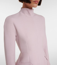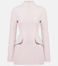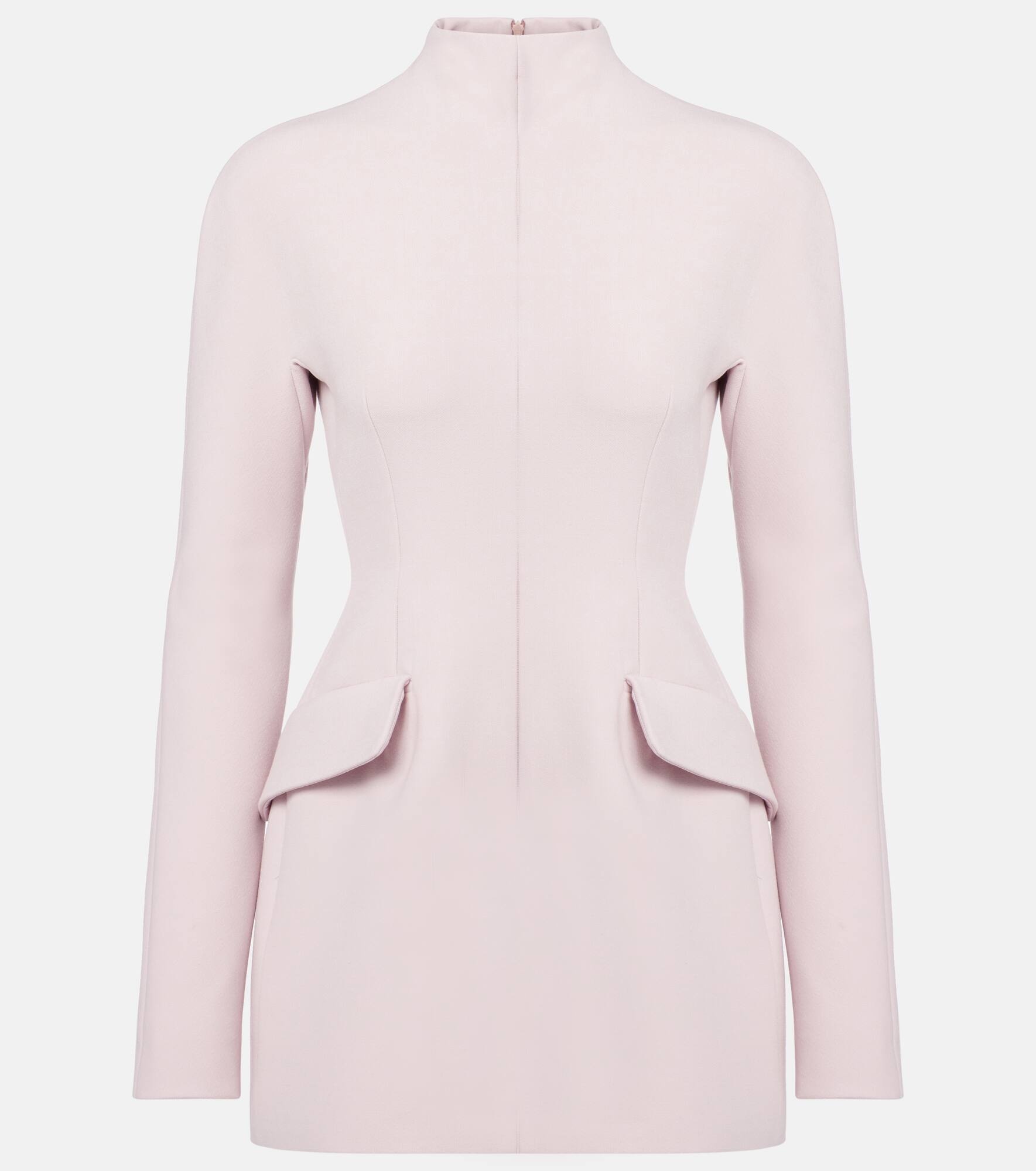 Founded on the principles of tailoring and experimentation, Sportmax combines a contemporary urban spirit with sportswear-inspired silhouettes. The Tefrite dress is an elegant piece cut from fluid crepe to a high-neck, mini silhouette. Product Details - Material: 53% polyester, 43% wool, 4% elastane - Care instructions: dry clean - Made in Italy - Designer color name: Blush - Item color: pink - Pockets: flap pockets - Lining: 100% polyester - Closure: invisible zipper - Item number: P01039710 Size & Fit - True to size - Cinched waist - Slightly stretchy fabric - The model seen in the picture is 178cm-5'10" and wearing a size DE 34