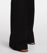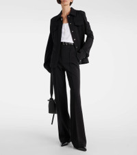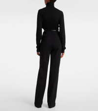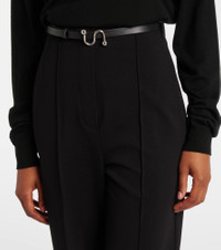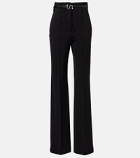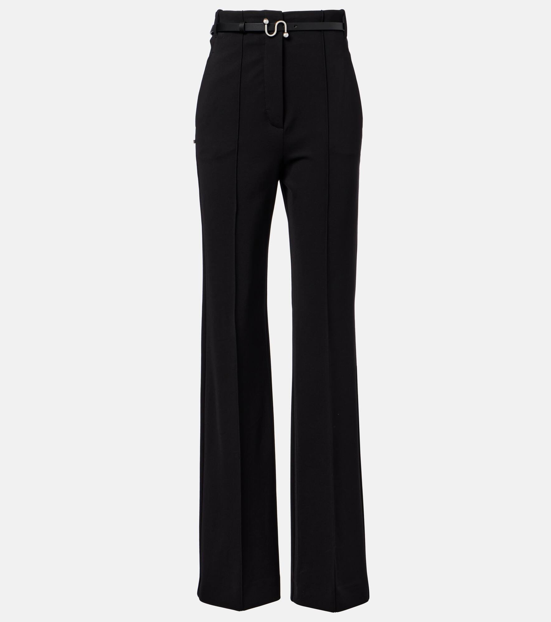 Founded on the principles of tailoring and experimentation, Sportmax combines a contemporary urban spirit with sportswear-inspired silhouettes. The Texas pants have a high-rise, flared fit and a detachable belt. Product Details - Material: 70% viscose, 25% polyamide, 5% elastane - Care instructions: dry clean - Made in Tunisia - Designer color name: Nero - Item color: black - Hardware color: silver - Closure: zip, hook, and button fastening - Pockets: slant pockets, welt pockets - Detachable belt - Belt loops - Single pleat - Item number: P01078989 Size & Fit - True to size - Sizing adapted to taller women - Stretchy fabric - Flared - High-waisted - The model seen in the picture is 178cm-5'10" and wearing a size XS