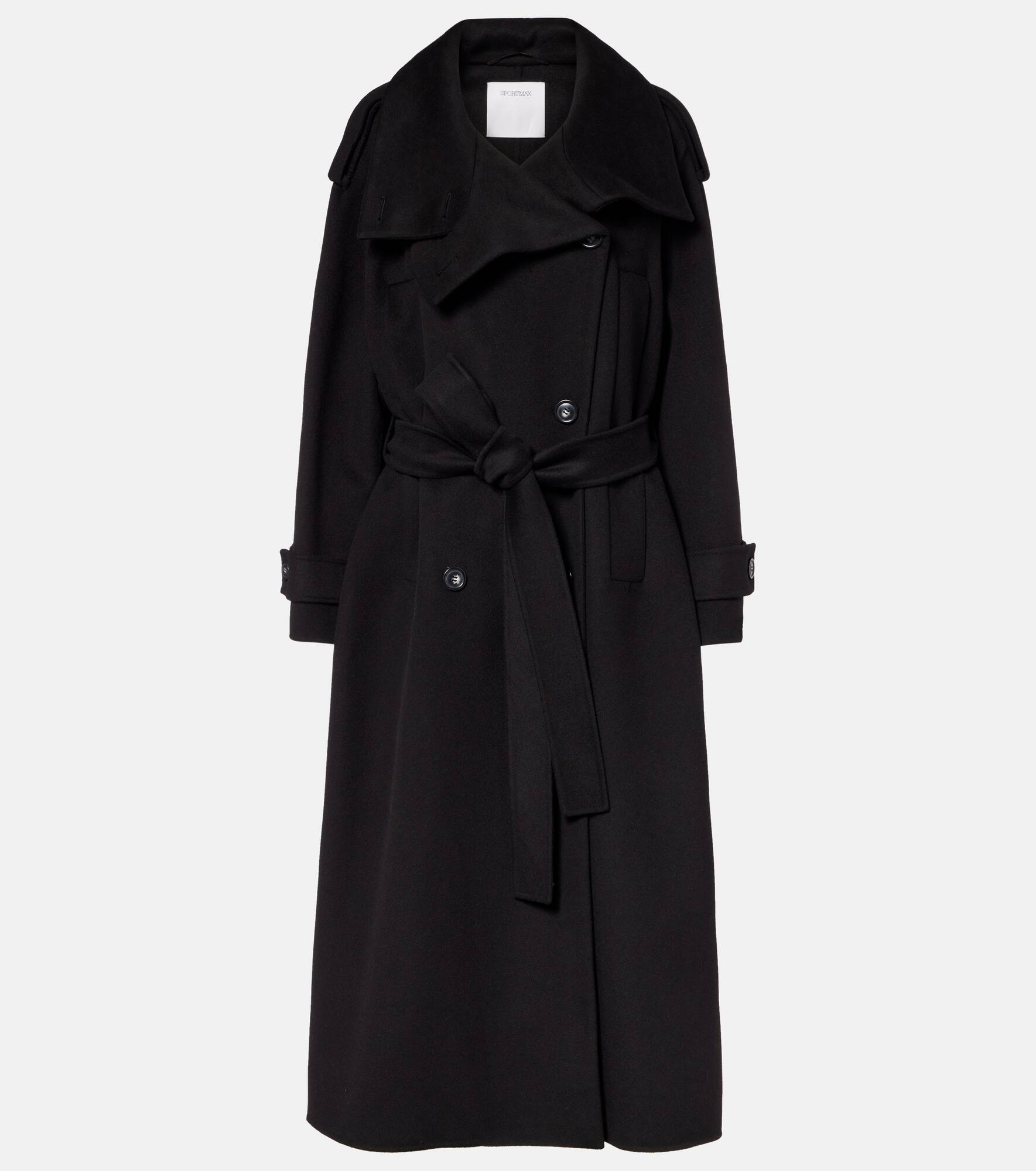 Founded on the principles of tailoring and experimentation, Sportmax combines a contemporary urban spirit with sportswear-inspired silhouettes. The Yole trench coat is crafted from double-faced virgin wool and is complete with statement welt pockets. Product Details - Material: 100% virgin wool - Care instructions: dry clean - Made in China - Designer color name: Nero Unito - Item color: black - Closure: double-breasted (four buttons) - Pockets: welt pockets - Cuff: tab cuff - Vent: single - Self-tie belt - Belt loops - Item number: P01096044 Size & Fit - True to size - Loose fit, comes with belt - Non-stretchy fabric - The model seen in the picture is 178cm-5'10" and wearing a size DE 34