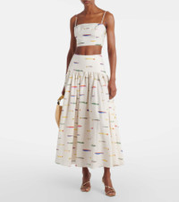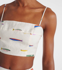 The Federico crop top from Staud is made from pure linen featuring a colorful print of sardines. The design has adjustable straps, a smocked back, and is lined with cotton. Product Details - Material: 100% linen - Care instructions: dry clean - Made in Vietnam - Designer color name: Pop Sardines Ivory - Item color: ivory, multicolor - Lining: 100% cotton - Item number: P01074634 Size & Fit - True to size - Elasticated top - Fitted - Non-stretchy fabric - Cropped - The model seen in the picture is 178cm-5'10" and wearing a size XS