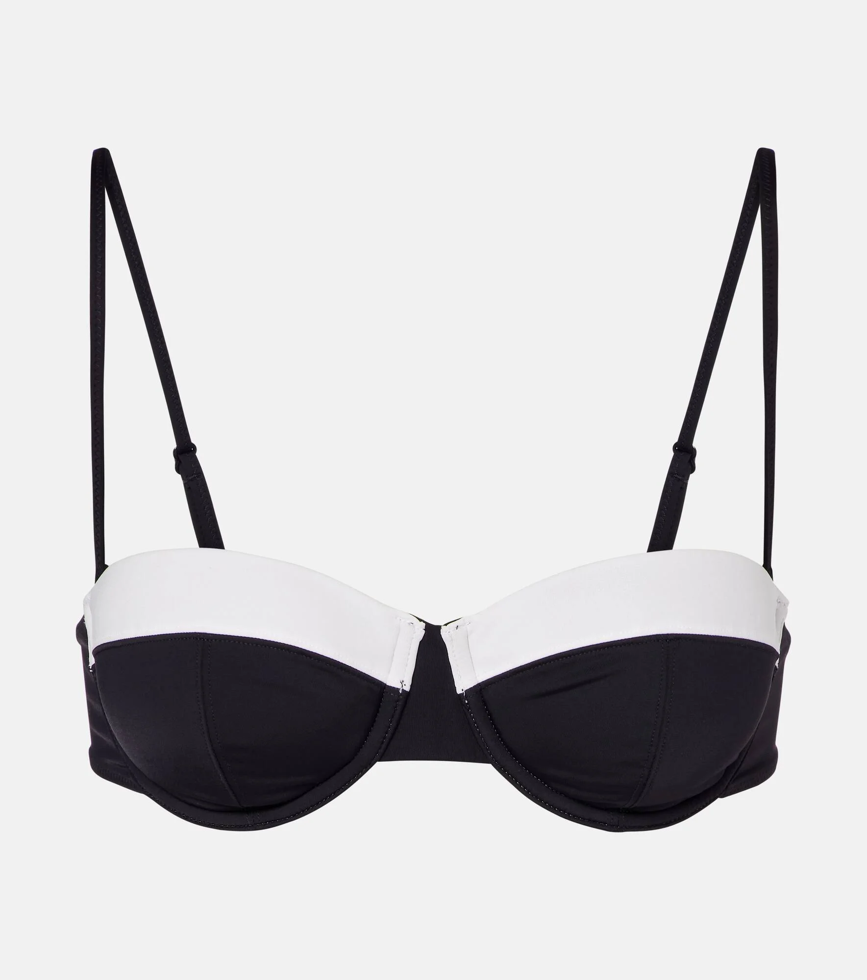 Staud has captured the hearts of many with its playful and uniquely fresh aesthetic. A chic addition to your swimwear collection, the Jo bikini top features a balconette design with contrasting details and detachable straps. Product Details - Material: 82% nylon, 18% elastane - Care instructions: hand wash cold - Made in Vietnam - Color: black - Designer color name: Black/White - Material II: 67% polyester (recycled), 33% elastane - Lining: 80% nylon, 20% elastane - Underwired cups - Closure: toggle fastening - Item number: P01150899 Size & Fit - True to size - Padded top - Underwired top - The model seen in the picture is 178cm-5'10", cup size B, and wearing a size XS