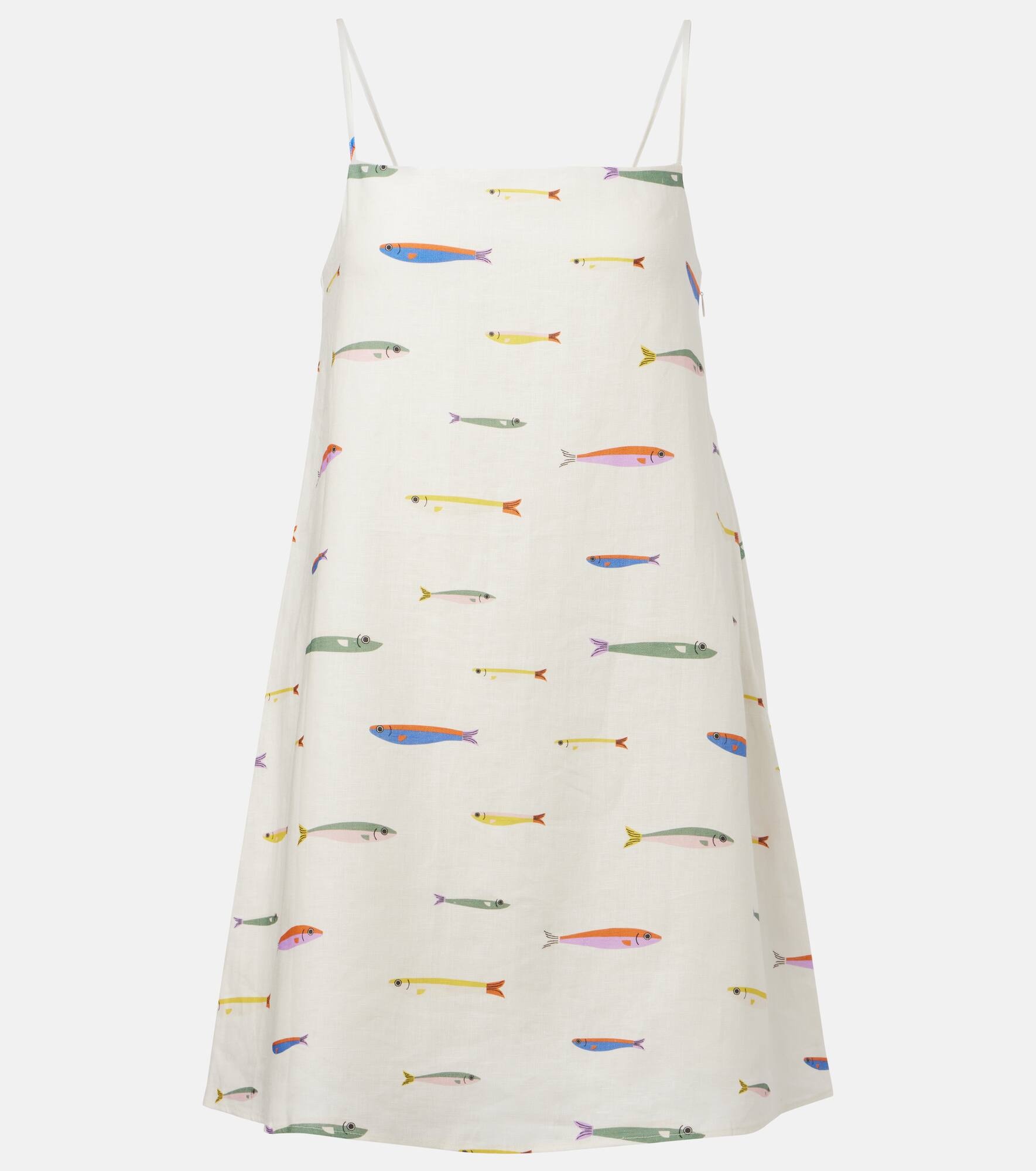 Capturing a playful summer spirit, the Laura minidress from Staud is made from cotton printed with sardine motifs. This style is suspended from adjustable spaghetti straps and falls into a straight, relaxed silhouette. Product Details - Material: 100% cotton - Care instructions: dry clean - Made in Vietnam - Designer color name: Pop Sardines Ivory - Item color: multicolor - Lining: 100% cotton - Adjustable shoulder straps - Closure: zipped side - Item number: P01074633 Size & Fit - True to size - Designed for a loose fit - Non-stretchy fabric - The model seen in the picture is 178cm-5'10" and wearing a size XS