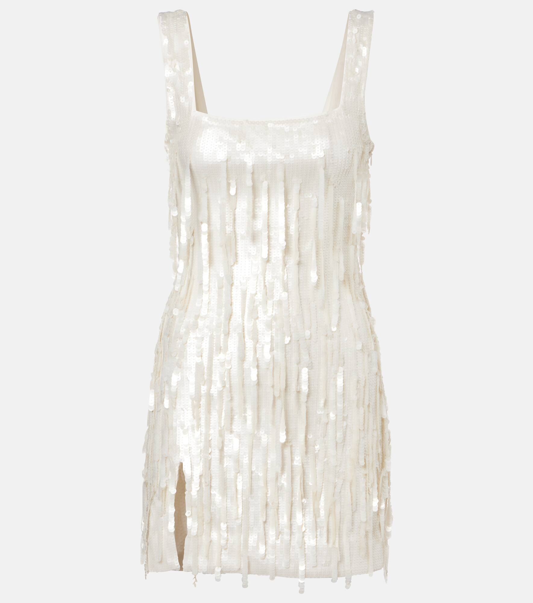 Staud seeks to break through repetition in design with thoughtful styles that are empowering and accessible. The Le Sable minidress features a minimalist silhouette, and it's entirely covered in pearlescent sequins in playful fringes. Product Details - Material: 80% nylon, 20% elastane - Care instructions: dry clean - Made in India - Designer color name: Pearl - Item color: white - Lining: 80% nylon, 20% elastane - Closure: concealed zipper, zipped side, hook fastening - Item number: P01074610 Size & Fit - True to size - Fitted - Stretchy fabric - The model seen in the picture is 178cm-5'10" and wearing a size XS