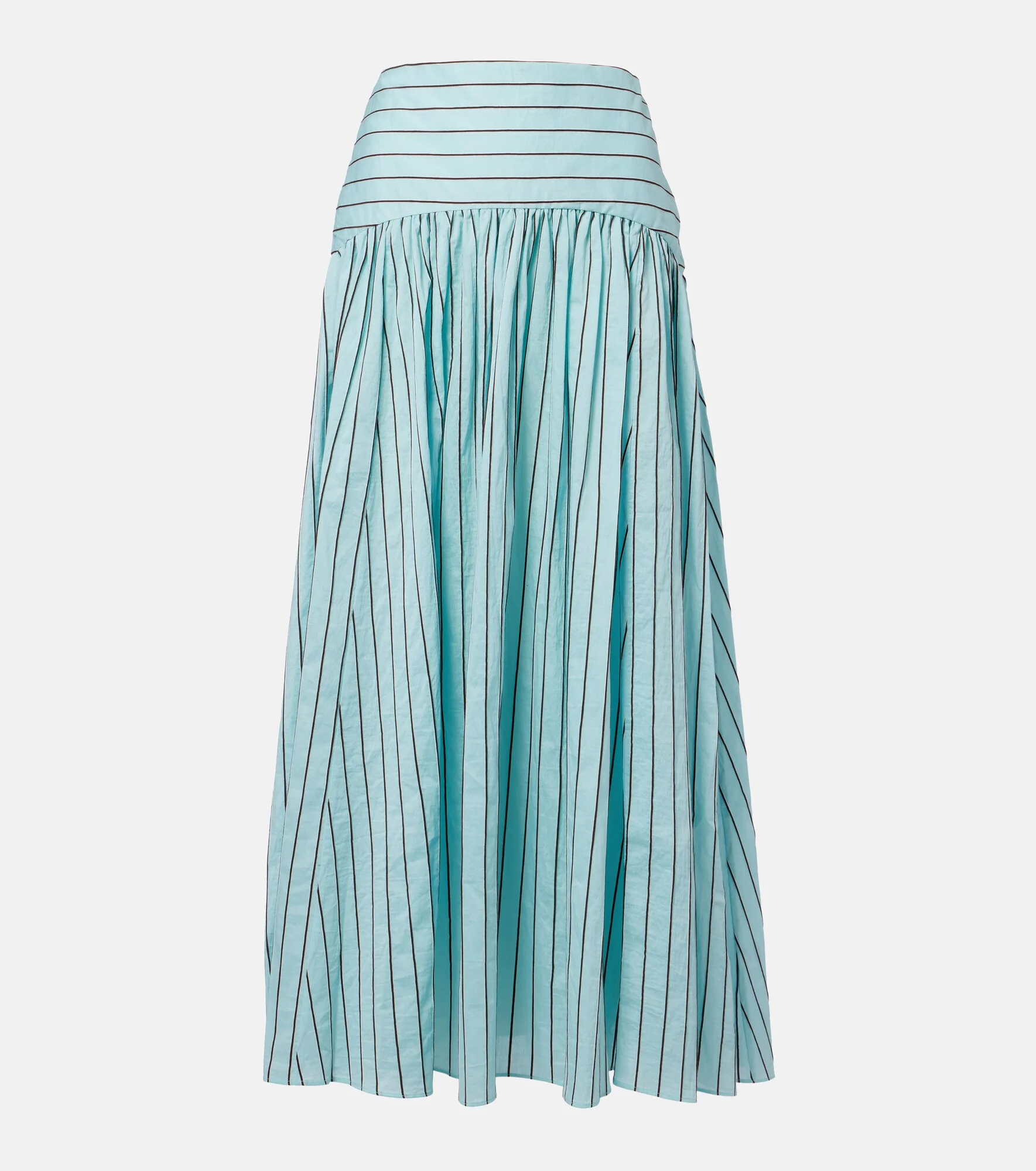 Procida Pleated Striped Cotton-blend Poplin Midi Skirt