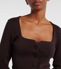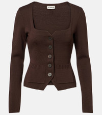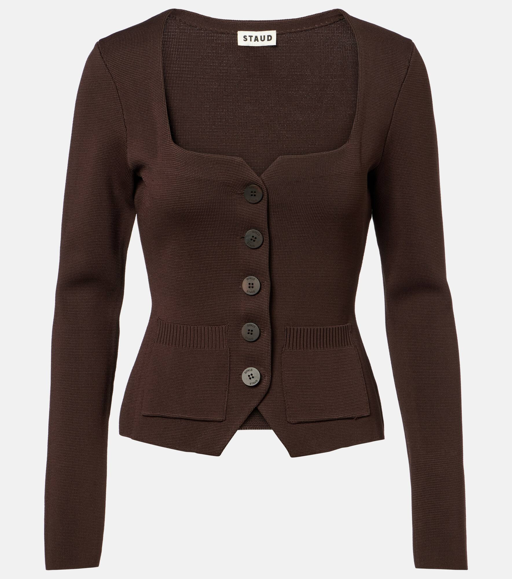 Staud seeks to break through repetition in design with thoughtful styles that are empowering and accessible. The Rachela cardigan boasts a square neckline. Product Details - Material: 80% viscose, 20% nylon - Care instructions: hand wash - Made in China - Designer color name: Earth - Item color: brown - Closure: buttoned front - Pockets: patch pockets - Item number: P01096628 Size & Fit - True to size - Cinched waist - Non-stretchy fabric - Slightly cropped - The model seen in the picture is 178cm-5'10" and wearing a size XS