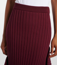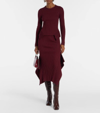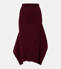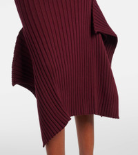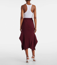 Asymmetric ribbed-knit midi skirt
