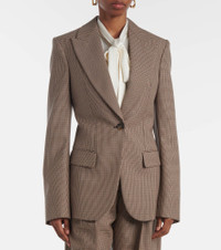 Product Details - Material: 100% virgin wool - Care instructions: dry clean - Made in Hungary - Designer color name: Multicolor Brown - Lining: 52% viscose, 48% cotton - Closure: single-breasted (one button) - Pockets: flap pockets - Item number: P01019270 Size & Fit - True to size - Oversized shoulders - Shoulder pad inserts - Cinched waist - Non-stretchy fabric - Falls below the hip - The model seen in the picture is 178cm-5'10" and wearing a size IT 40