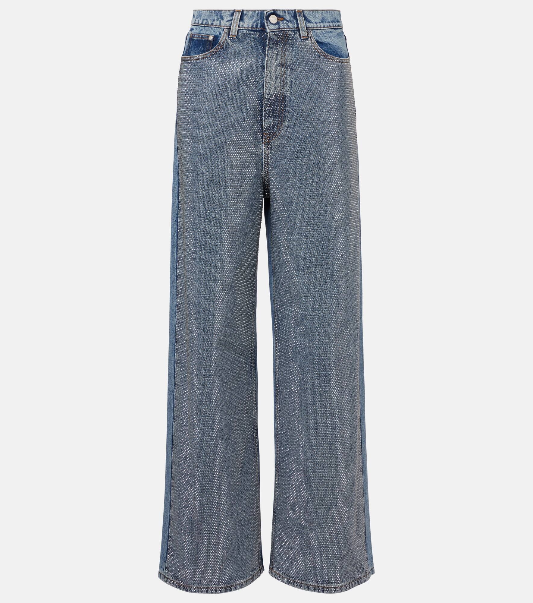 Crystals add a touch of sparkle to these Stella McCartney jeans. Crafted from light denim, this design features a high-waisted, wide-leg silhouette. Product Details - Material: 100% cotton - Care instructions: hand wash - Made in Italy - Designer color name: Vintage Blue Denim - Item color: blue - Closure: zip and button fastening - Pockets: five pockets - Item number: P01039304 Size & Fit - True to size - Non-stretchy fabric - Wide-leg - Mid-rise - Low inseam - The model seen in the picture is 178cm-5'10" and wearing a size 26