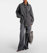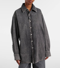 Expand your wardrobe with Stella McCartney's iconic denim collection. Crafted in Italy from pure cotton with a washed-off effect, this shirt features a classic pointed collar, snap-buttoned front, and side slits. Product Details - Material: 100% cotton - Care instructions: machine wash at 30 degrees - Made in Italy - Designer color name: Black Denim Wash - Item color: black - Collar: classic (Straight point) - Closure: snap-buttoned front - Side slits - Cuff: buttoned - Item number: P01052184 Size & Fit - True to size - Dropped shoulders - Oversized - Non-stretchy fabric - Falls below the hip - The model seen in the picture is 178cm-5'10" and wearing a size XS