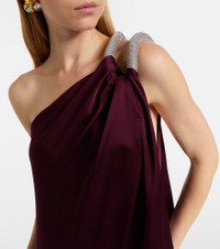 Designed to command attention, this Stella McCartney satin gown stuns with its elegant one-shoulder silhouette. Timeless in its simplicity, the piece is suspended on a crystal-embellished strap. Product Details - Material: 73% acetate, 27% viscose - Care instructions: dry clean - Made in Romania - Designer color name: Bordeaux - Item color: burgundy - Long vent - Pockets: side slit pockets - Includes: dust bag - Item number: P01104000 Size & Fit - True to size - Designed for a loose fit - Non-stretchy fabric - The model seen in the picture is 178cm-5'10" and wearing a size IT 40