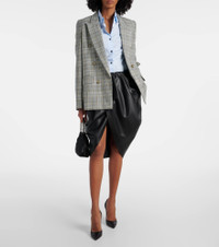 Draped faux leather midi skirt